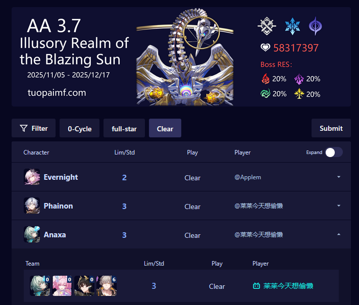 Самая имбища режима - это Аглая с двумя сапогами и вентилятором. Это вообще пиздец, который максимальную сложность вывозит по дпс на двух звездах.