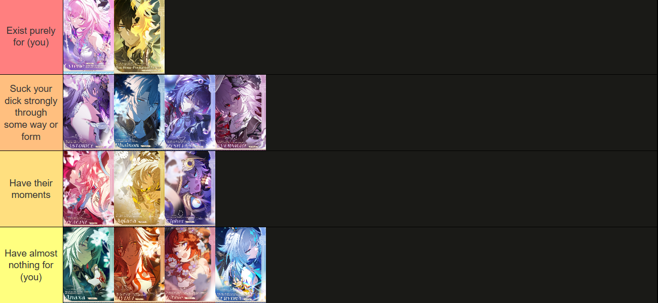 Я бы советовал добирать Тьмарт и собирать вторую пачку из 4.х, мб Радость, а мб что-то ещё. Выбор там будет между пачкой Яэ и Химеко, это типа как выбирать между Кас и Фаеноном.