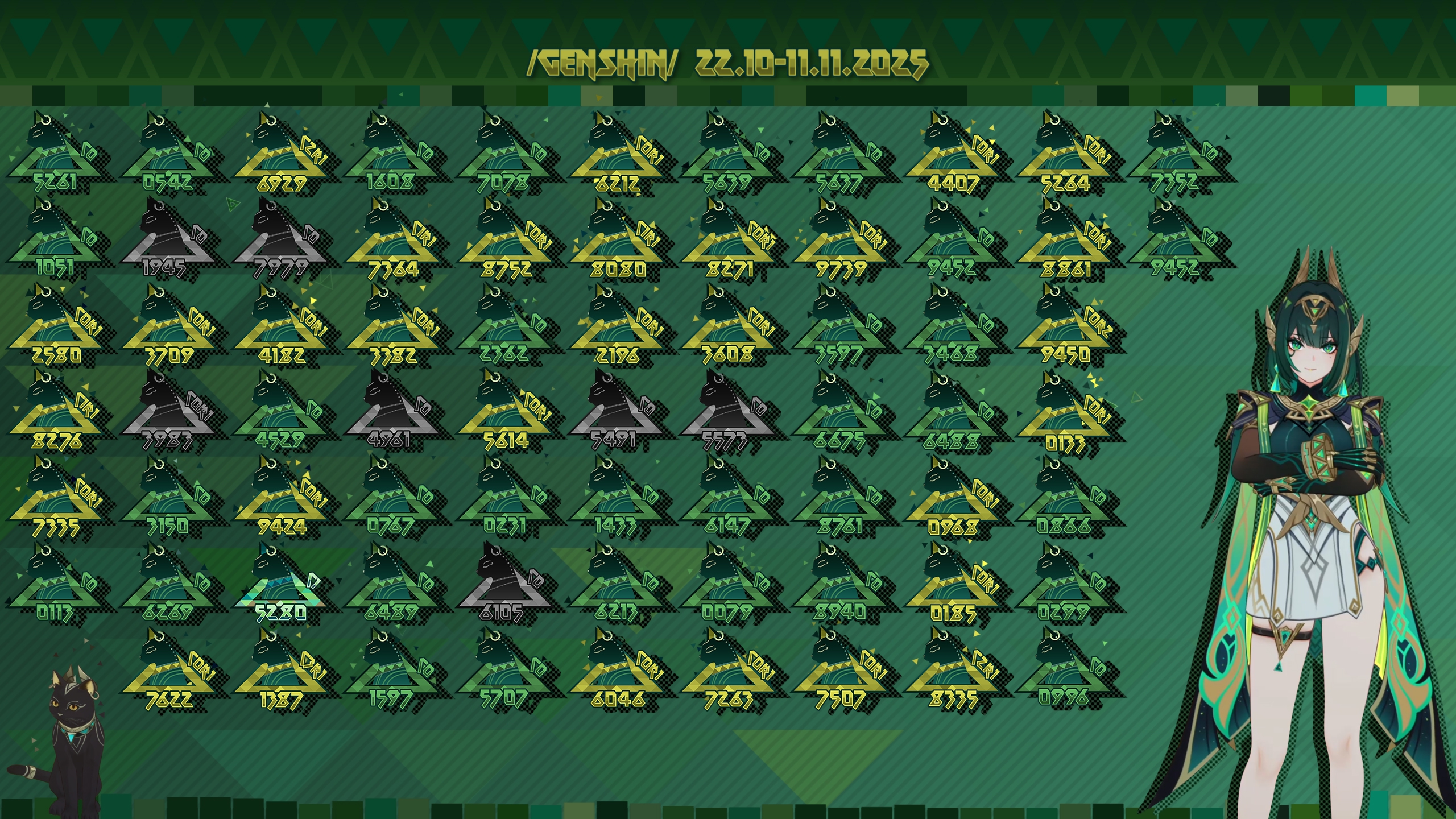 ✦ Гача-калькулятор https://hutaobot.moe/tools/gachacalc ✦ Показать персонажей картинкой https://akasha.cv/ ∙ https://enka.network/