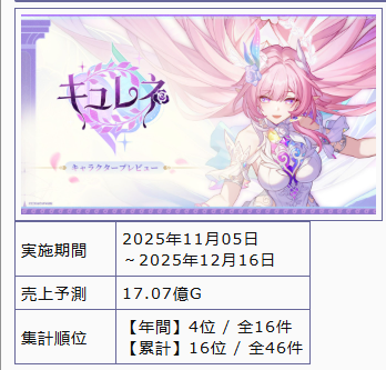 >>5890046 Судя по таблице у неё баннер целый патч шёл так что она весьма хорошие цифры набрала тут стоит её сравнивать тогда с суммарными показателями Сандей и генерала + Фуга и Светлячок у хонкая и Нёвиллет Чжун Ли и Мявуика Ситлали у геншина. Можно ещё с баннером Кирены сравнить который тоже целый патч будет идти.