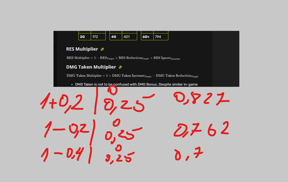 >>5891111 Возможно, потому что не увидел никаких показателей про деление на противнике в формуле. А может просто формула говно. Тогда если сравнивая с врагами: - с 20% уязвимостью ко льду - с 20% резистом ко льду - с 40% резистом ко льду До и без бафа относительная разница во вножителе ResMult - 0,827 - 0,762 - 0.7 При этом общий ResMult с учётом бафа - 1.45 - 1.05 - 0.85 (почти в два раза по сравнению с уязвимым). Если брать осьминожку на врага с лёд-сопротивлением, то этот множитель будет заметно лучше работать на враге с сопротивлением, чем на враге с уязвимостью. Но брать на врага с сопротивлением осьминожку, конечно, не стоит. Ведь она просто не рассчитана вообще на приста игромеханически и по цифрам. В общем для баффа главное именно выглядеть хорошо.
