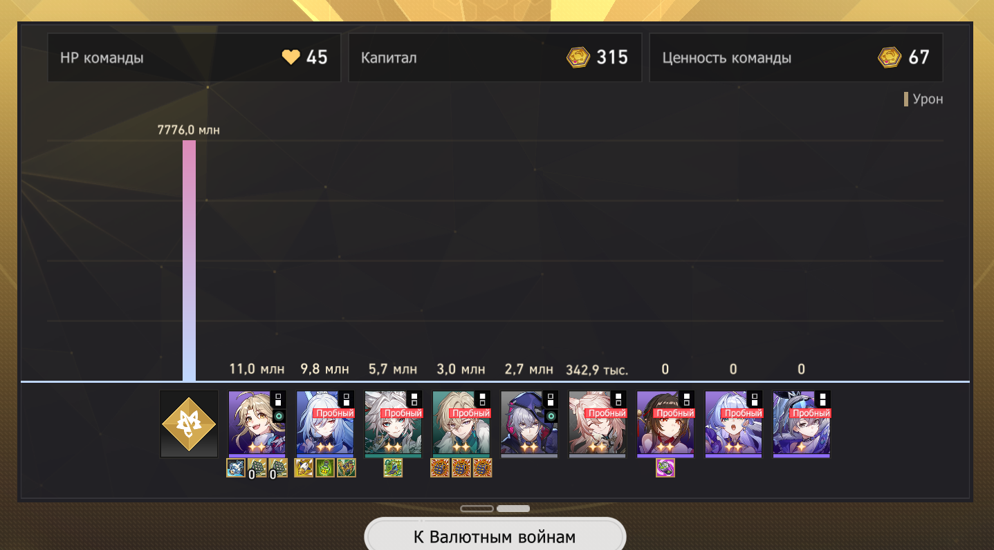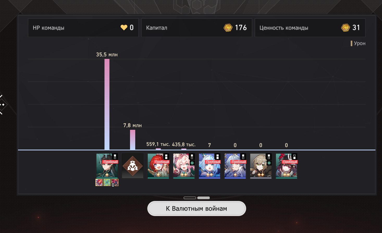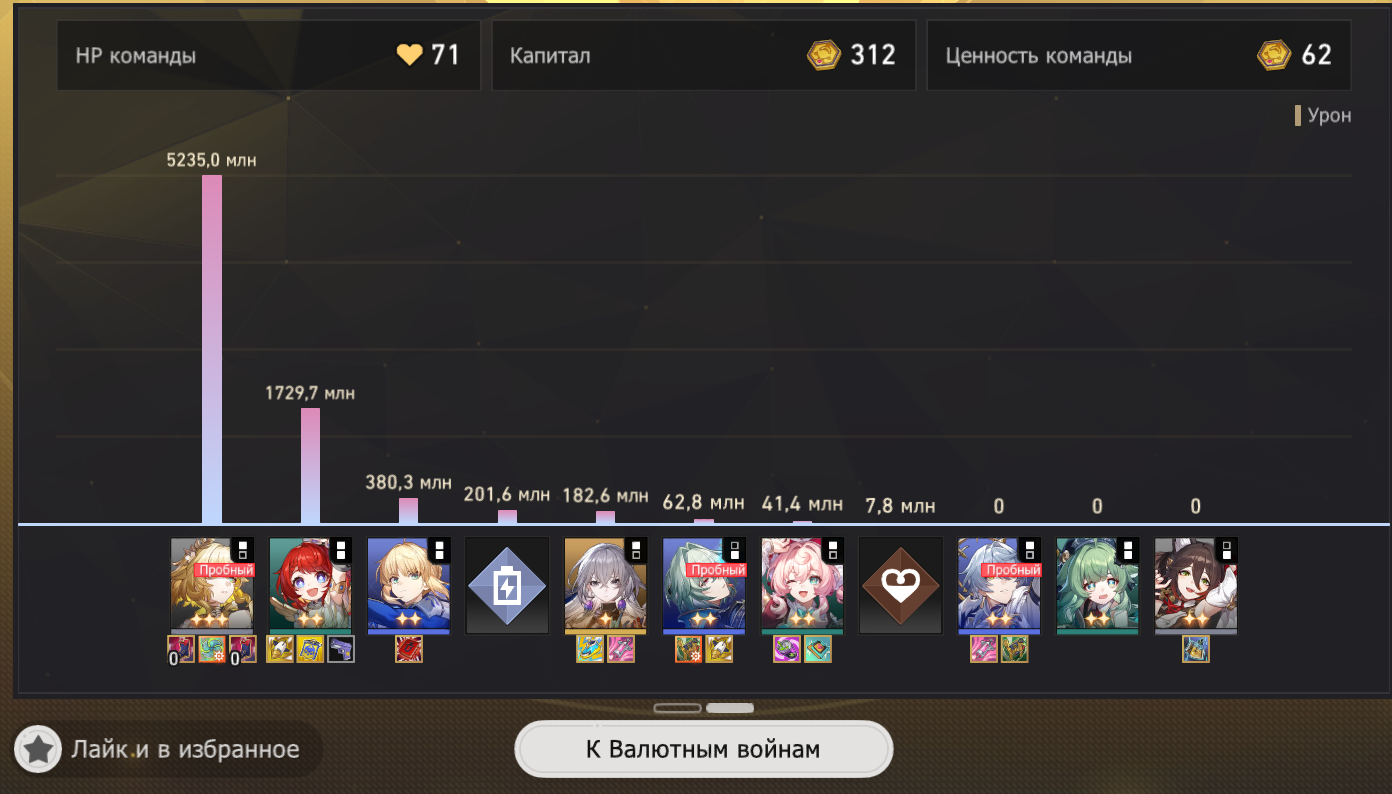 Аглая 2 звезды с Калдеем под ботинком, но это рандом. С тем же успехом можно считать, что и доты ирли ебут с эмблемой, но ты не всегда с эмблемой будешь. Дебаффы не трогал, но практически уверен, что это кал, там Дыня нужна, а её ещё получи, а триальная Дыня поди лютый кал. Возможно групп. атака через Герта+Яшма. Но что-то мне подсказывает, что они сосут ирли. Там Герта большая нужна.