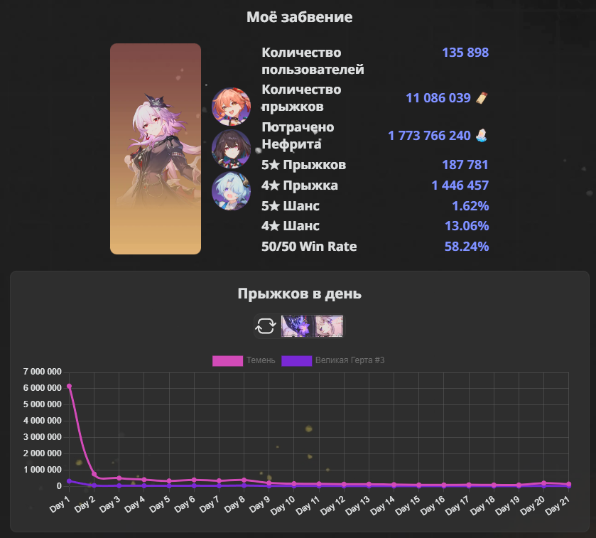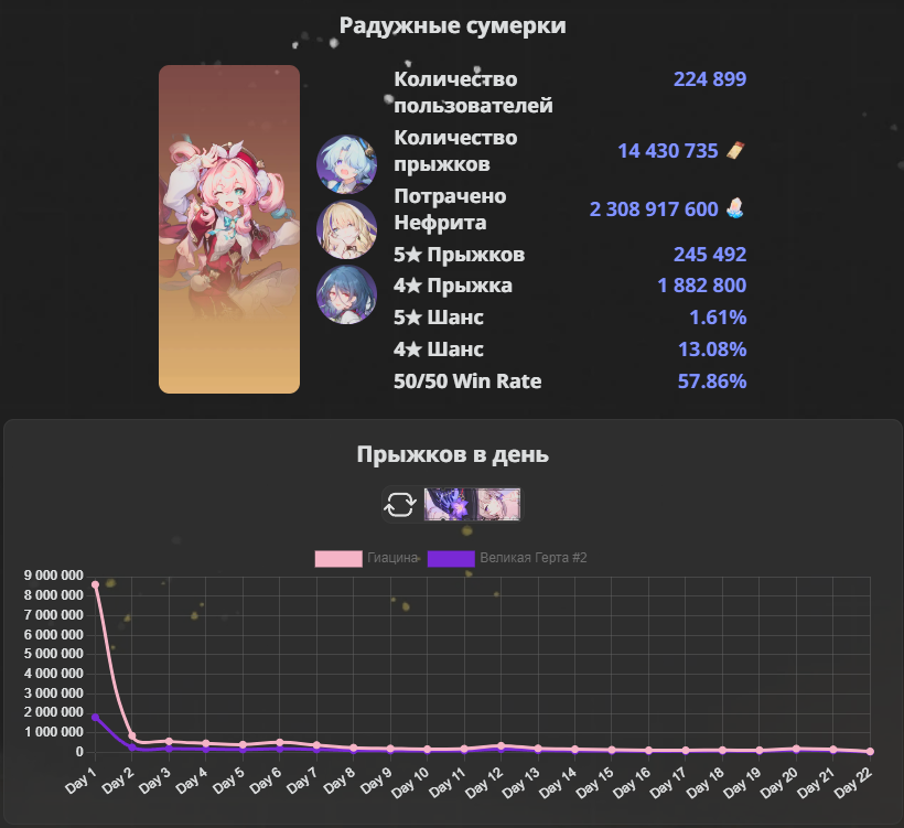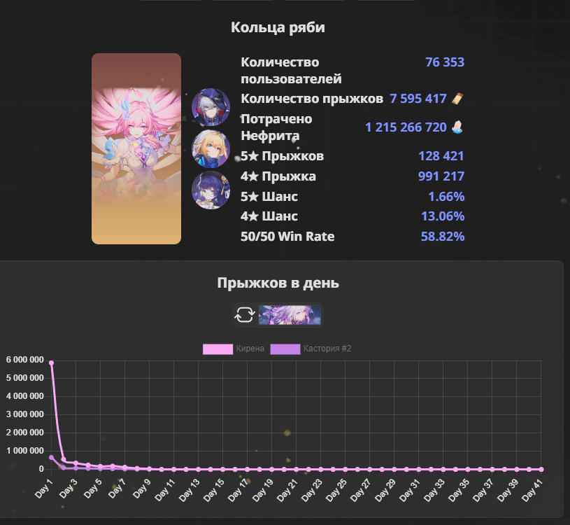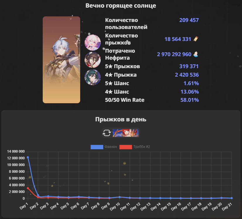 >>5890185 → Судя по динамике прироста нихуя не будет, если только не произойдёт сценарий коллаба и фаенона, когда после начала коллаба у фаенона произошел аномальный прирост(тупо половину вливаний денег на коллаб приписывали в его баннер), но тут нет уникальных баннеров, поэтому Кирене вряд-ли лишнее бабло припишут.
