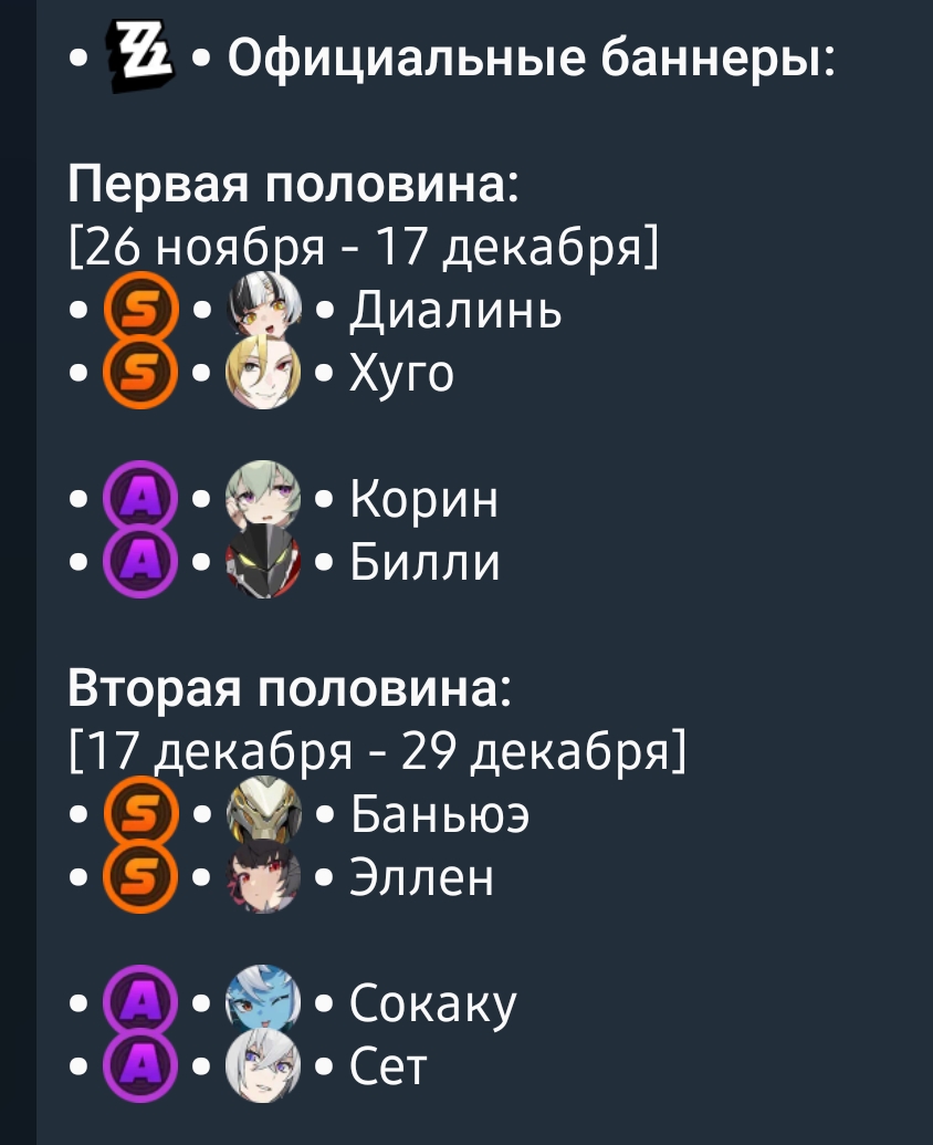 Разрабы ZZZ мега мозги, конечно. Реран Влада и баннер робота мужика перед появлением очередной охотницы. Которая релизнется 31 декабря. Баннер робота ещё и сократили на недельку, ибо с его геймплеем соберёт примерно ничего. А потом можно снова говорить, что продаются только грудастые тянки, лол. Отдельный рофл это разговоры о сюжете с главным сценаристом, который на 95% вопросов ответил - ну, потом узнаете.