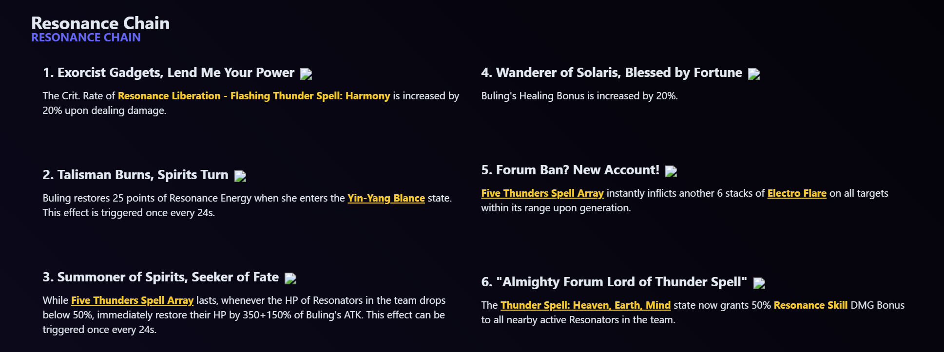 Некоторые Электро-атаки накладывают на цель складывающийся эффект «Электро-вспышка». Пока действует «Электро-вспышка», он периодически наносит цели Электро урон. С каждым нанесенным уроном цель теряет половину стаков этого эффекта. По умолчанию «Электро-вспышка» может складываться до 10 раз. Чем больше стаков, тем больше наносимый урон. При максимальном уровне «Электро-вспышки» каждый новый наложенный уровень становится складывающимся эффектом «Электро-ярость». Этот эффект увеличивает урон, наносимый следующим срабатыванием «Электро-вспышки». Эффект «Электро-ярость» сбрасывается после своего срабатывания. По умолчанию «Электро-ярость» может складываться до 10 раз. Чем больше стаков, тем больше урон от «Электро-вспышки».