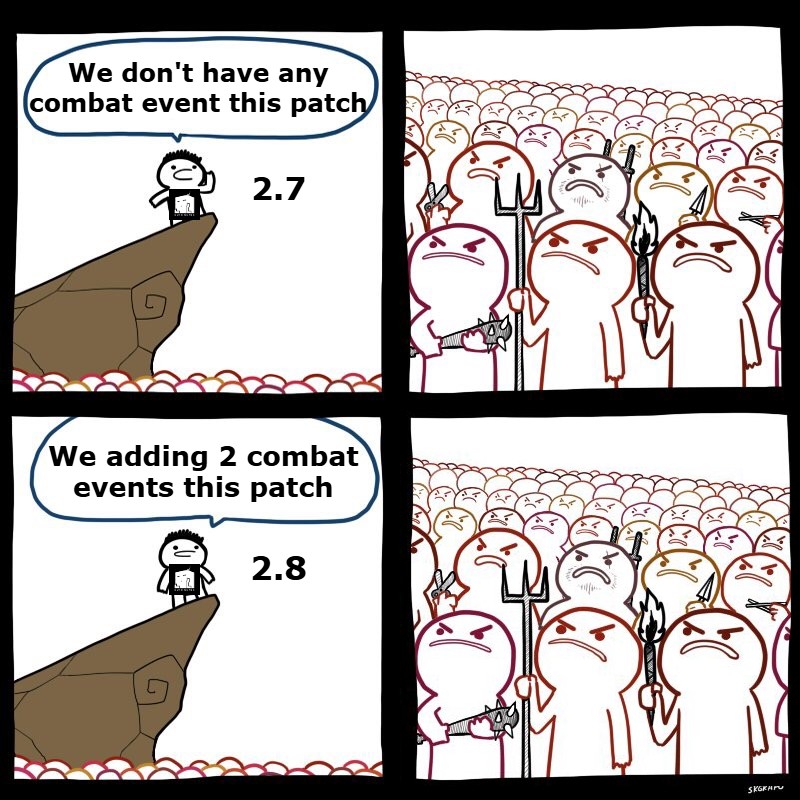 Почему последние патчи такие хуевые? Писевор увидел, что единственный конкурент (зюзя) барахтается в кале и решил забить на игру? Или хочет чтобы максимальное кол-во гачапорков пошли смотреть на бету эндфилда с дальнейшим ливом туда?