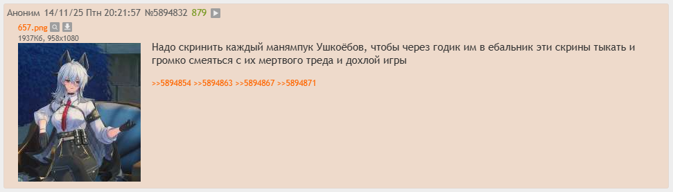 >>5895307 Лучше бы они в своих тредах срали, а не в нашем. Я вот вообще почти не постил, так как каждый второй это набигатель. Он не выражает мнение, он бля накидывает и ждет юшки.