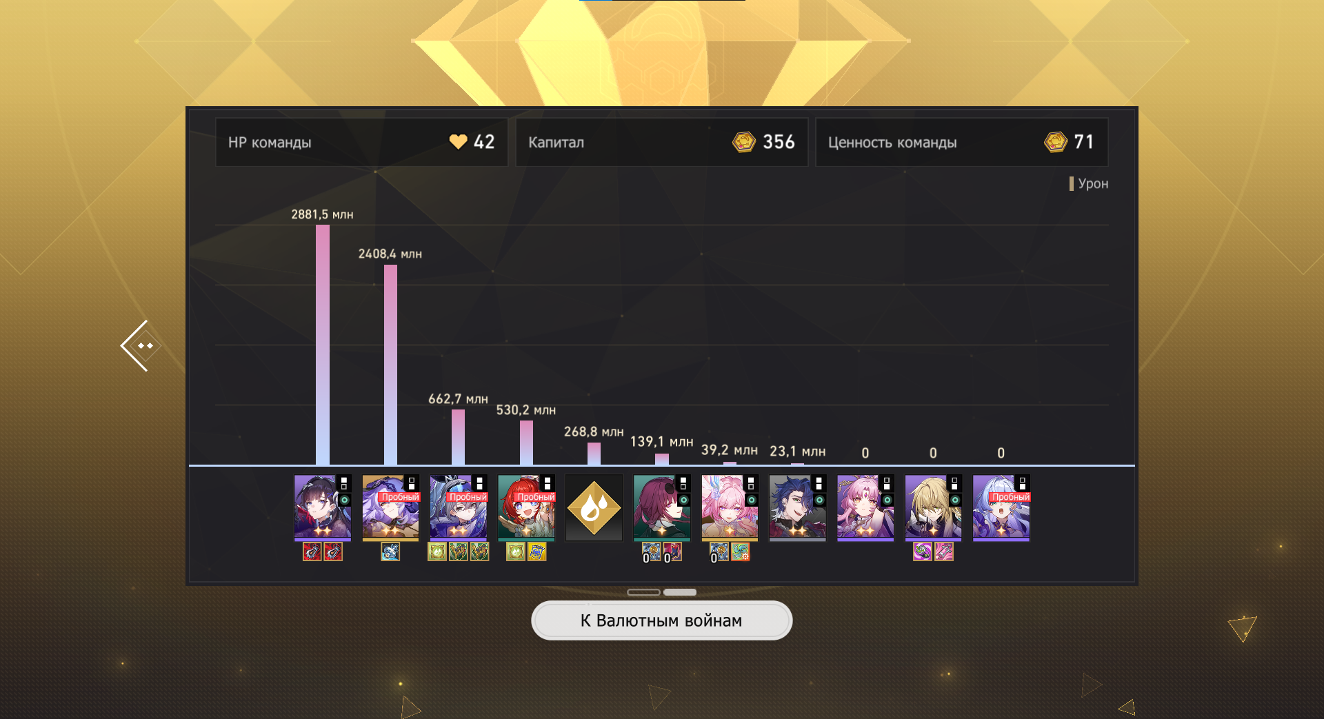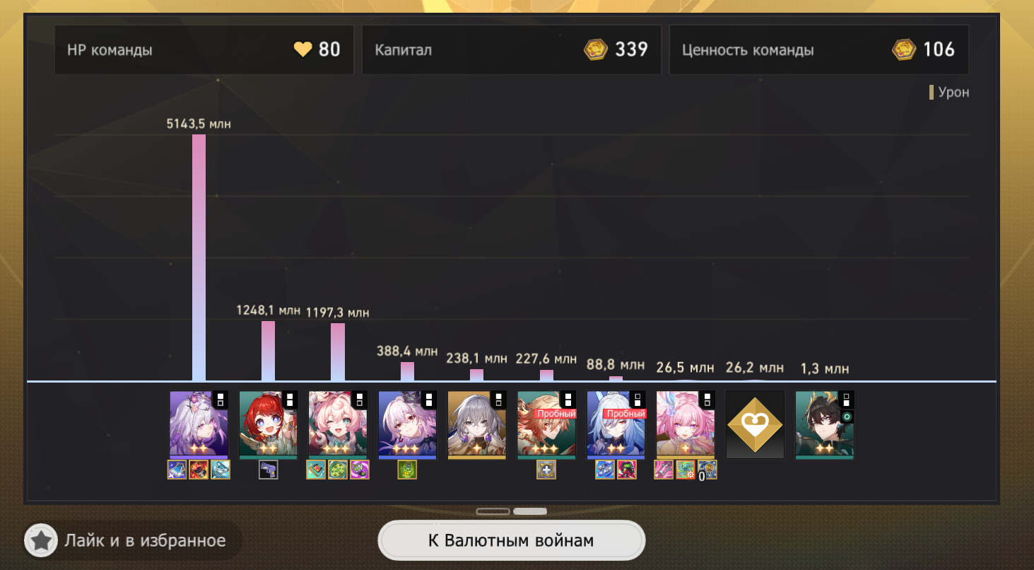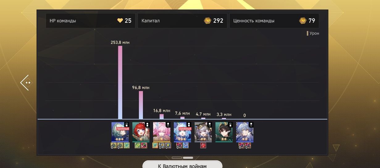 Консты неимоверно решают в валютных войнах, попробовал с фтп аккича, там даже разница между е0 и е1 Трибби космическая, та же Жуань даёт огромный буст даже в пачках без связей тупо за счёт е1
