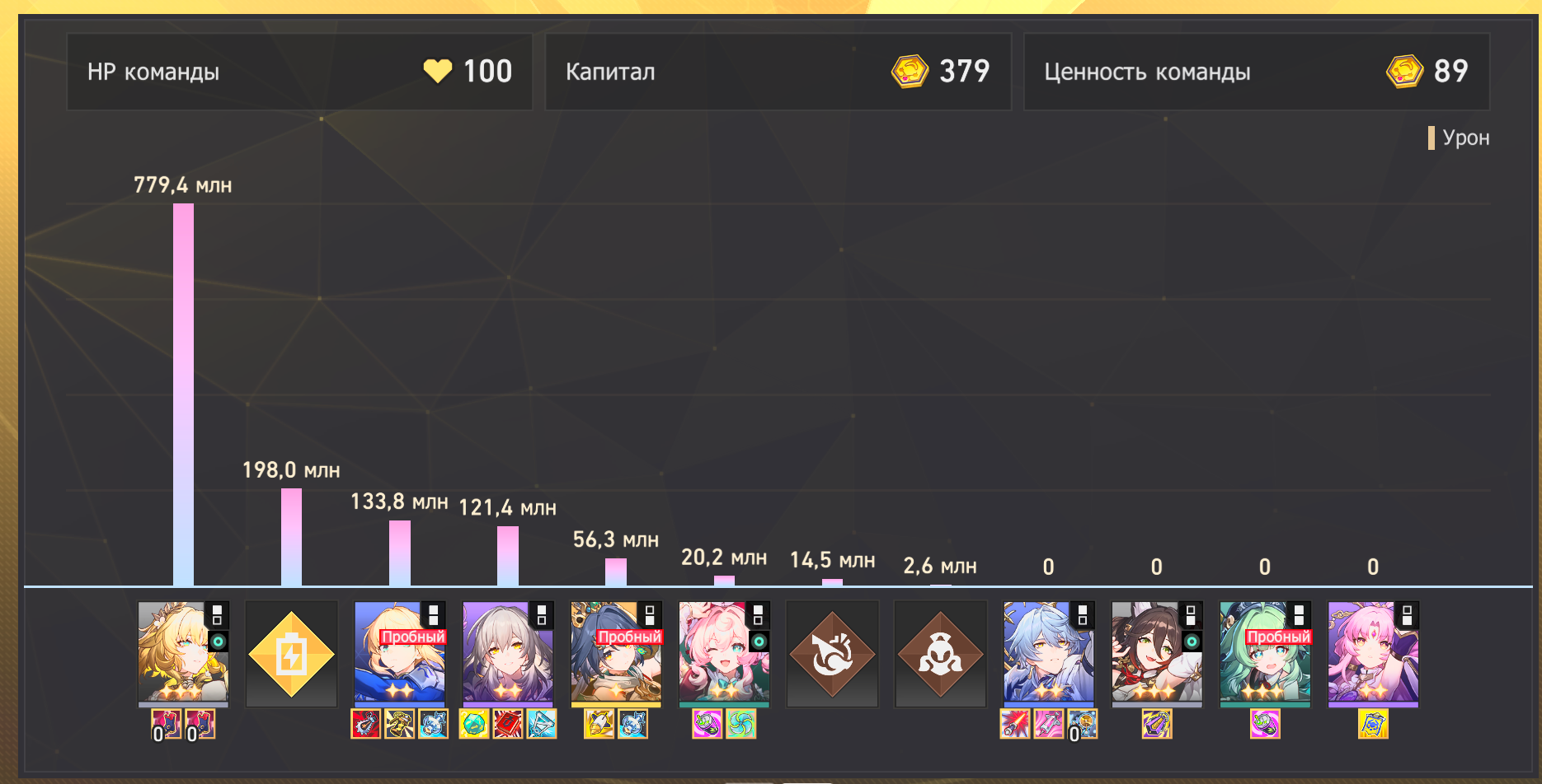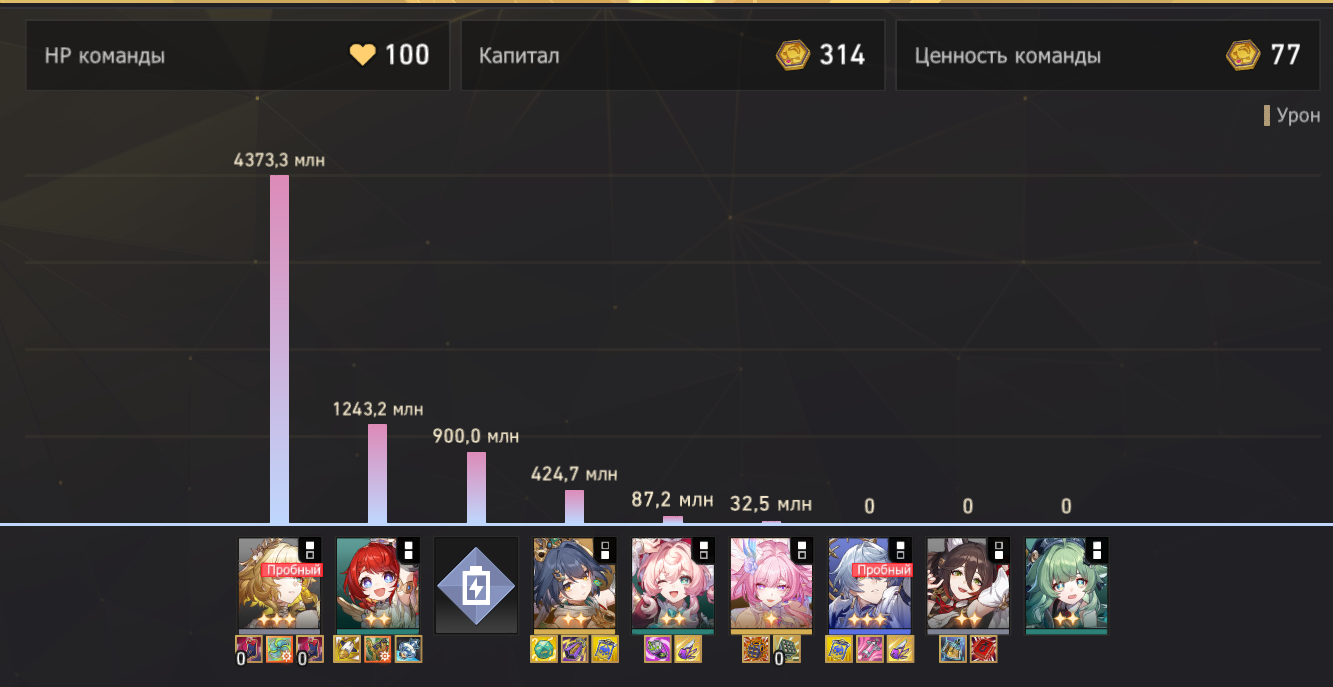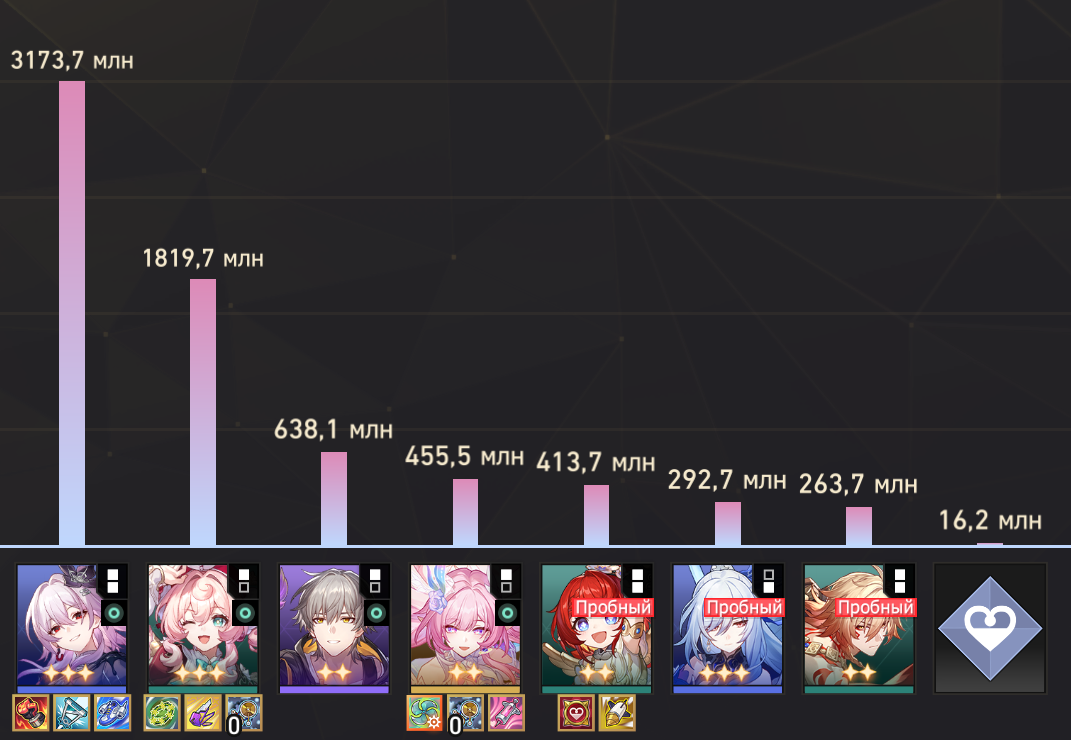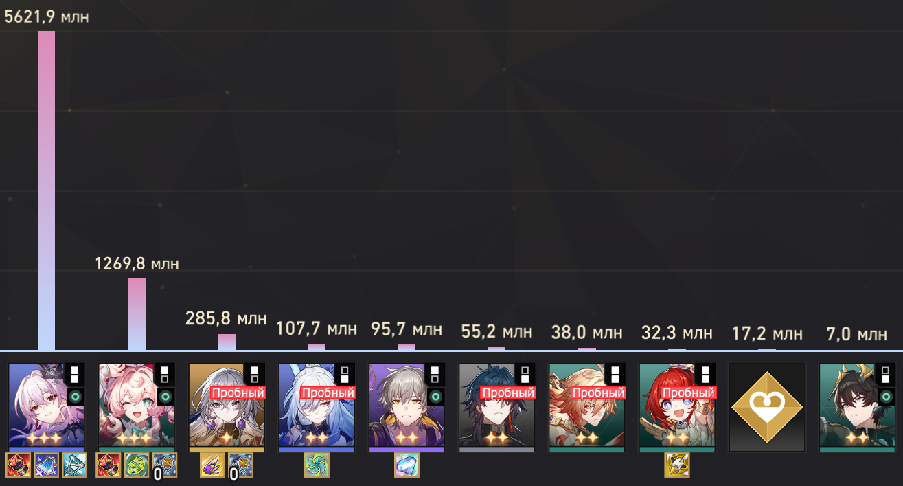 Какой же кал пробитие, такое впечатление что супербрейку забыли множителей добавить. Светлячок че то может дамажить только через лаки страйк и спам ультой, но ее ничем не разогнать, урон на уровне 1зв аглаи без сапог получается. И эффект связи тот еще кал, ноль урона, регенит ульту немножк команде, ну ахуеть теперь, команда то не дамажит нихуя.