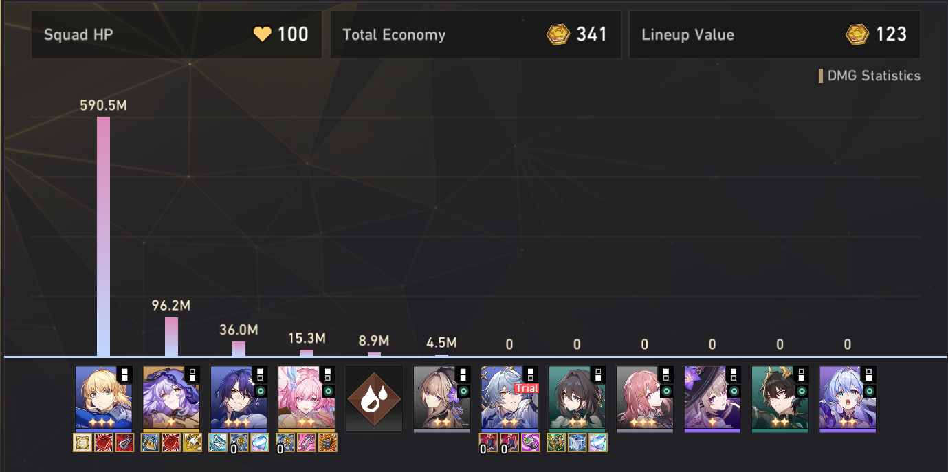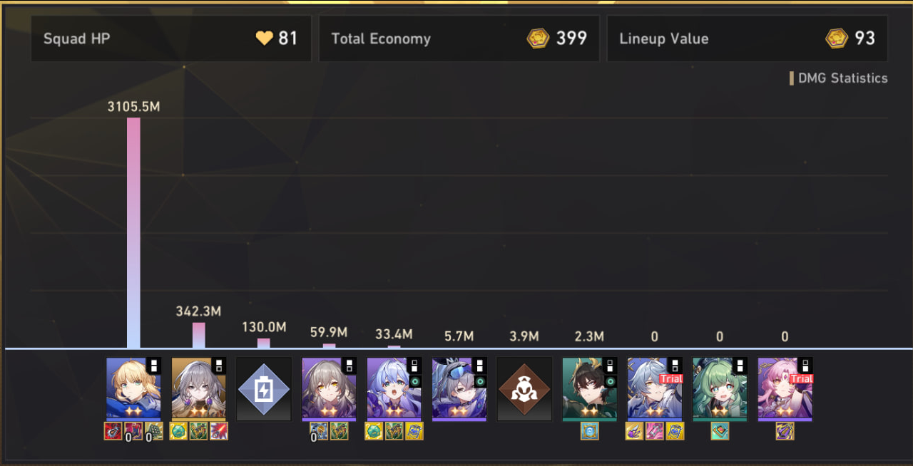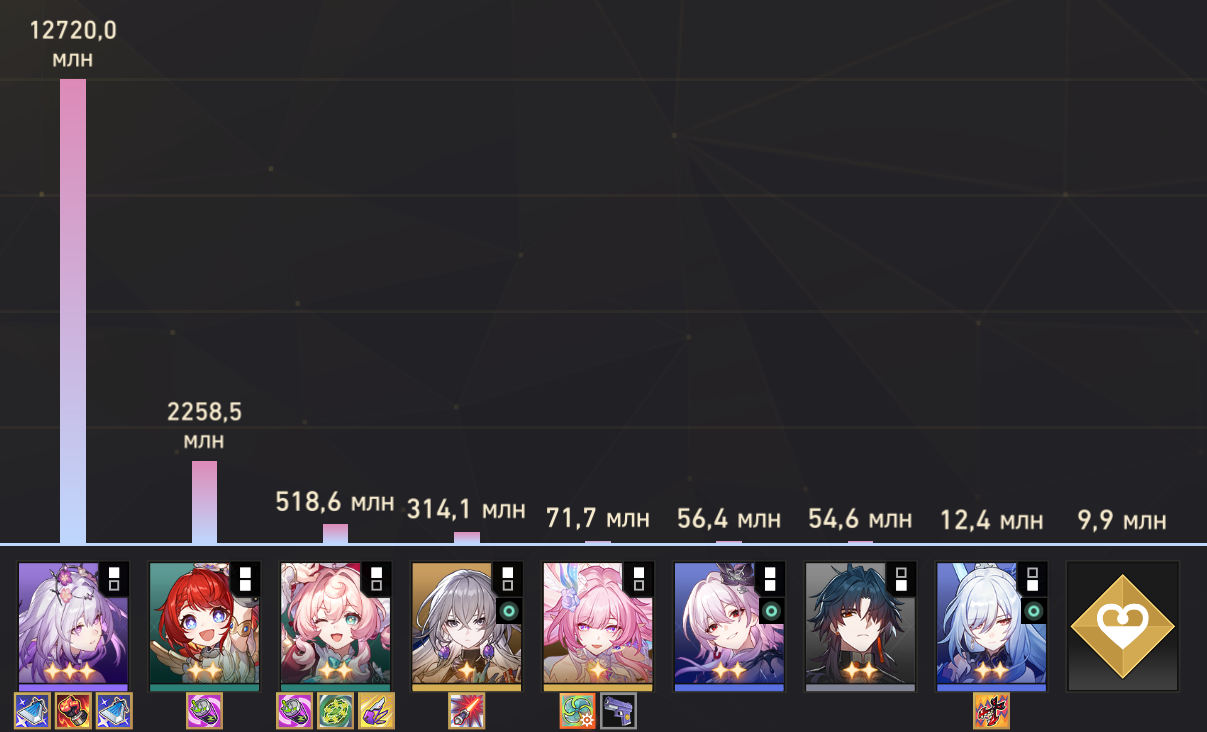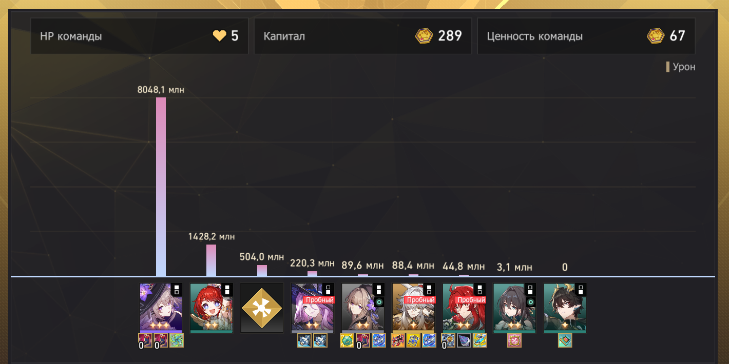 Какой же кал пробитие, такое впечатление что супербрейку забыли множителей добавить. Светлячок че то может дамажить только через лаки страйк и спам ультой, но ее ничем не разогнать, урон на уровне 1зв аглаи без сапог получается. И эффект связи тот еще кал, ноль урона, регенит ульту немножк команде, ну ахуеть теперь, команда то не дамажит нихуя.