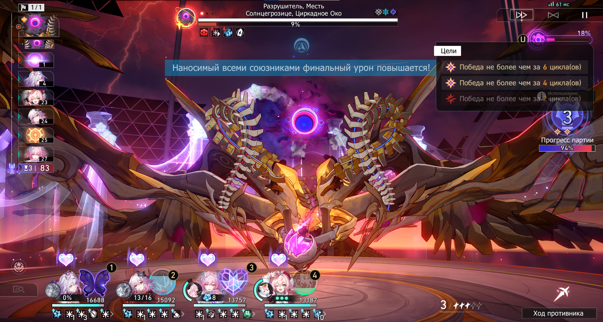 Ну и автобой по-моему фейлит с ультой Кирены. Там если ульт Кирены в самом начале боя, нужно жать Кирену другую цель, ульт Аглаи и потом Кирену в Аглаю. Чтобы Аглая сразу получила ход и фулл стаки. Автобой по-моему там срёт.