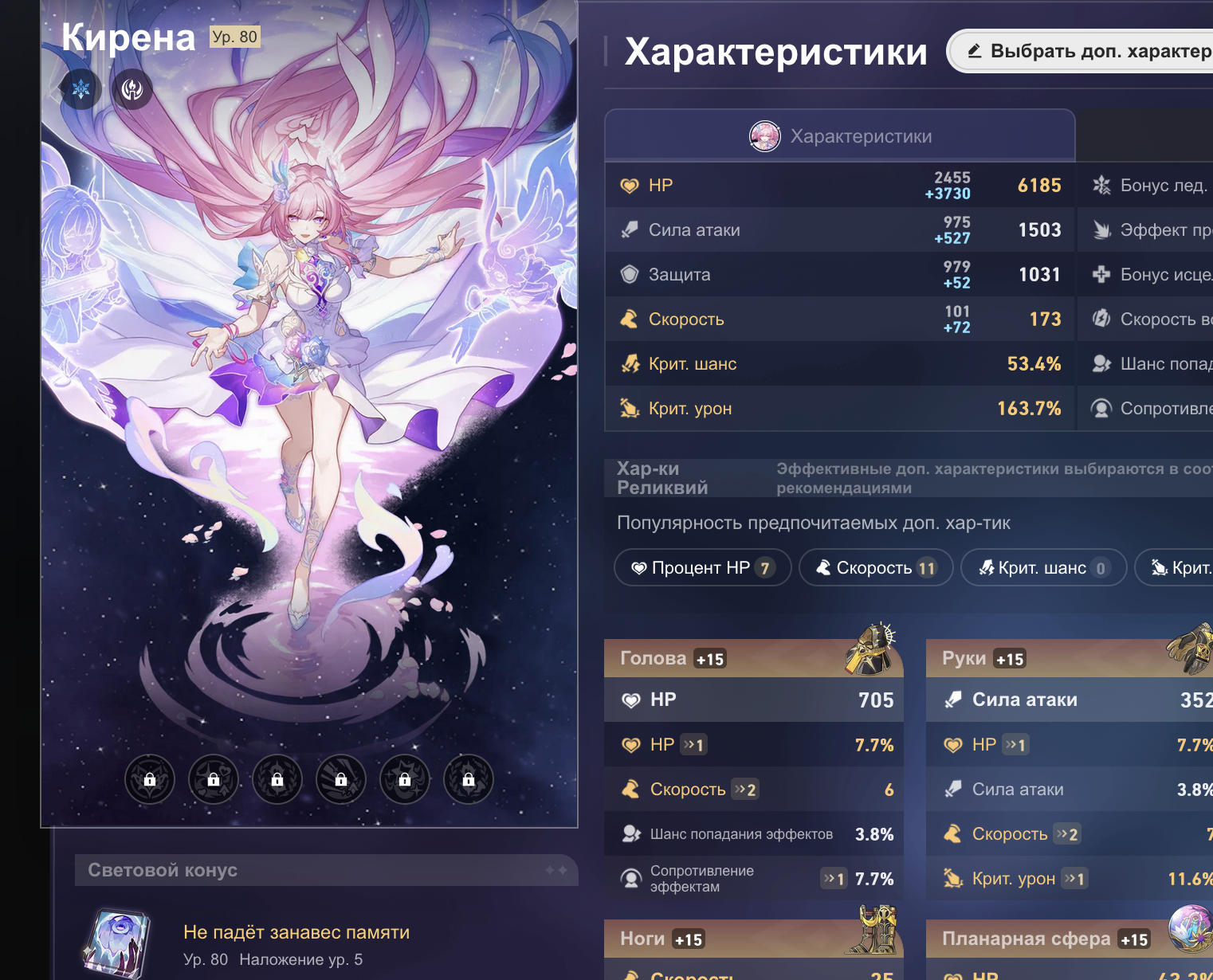 Анончики, соверщилось! Я наконец достал Гиацину с 77 крутки гарантом! Зацените как собрал, пришлось даже у Лочи пару артов отобрать. Ну и наконец вернулся к 80к в вымысле. Все же мета и Герта это топ