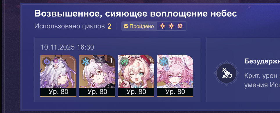 Если есть слот или эмблема дотов - можешь выкинуть Асту или Сампо и закинуть Фусюань. С ней 100% пройдёшь. Сэйвит от ваншотов, когда босс вдруг захочет 4 раза подряд сходить.