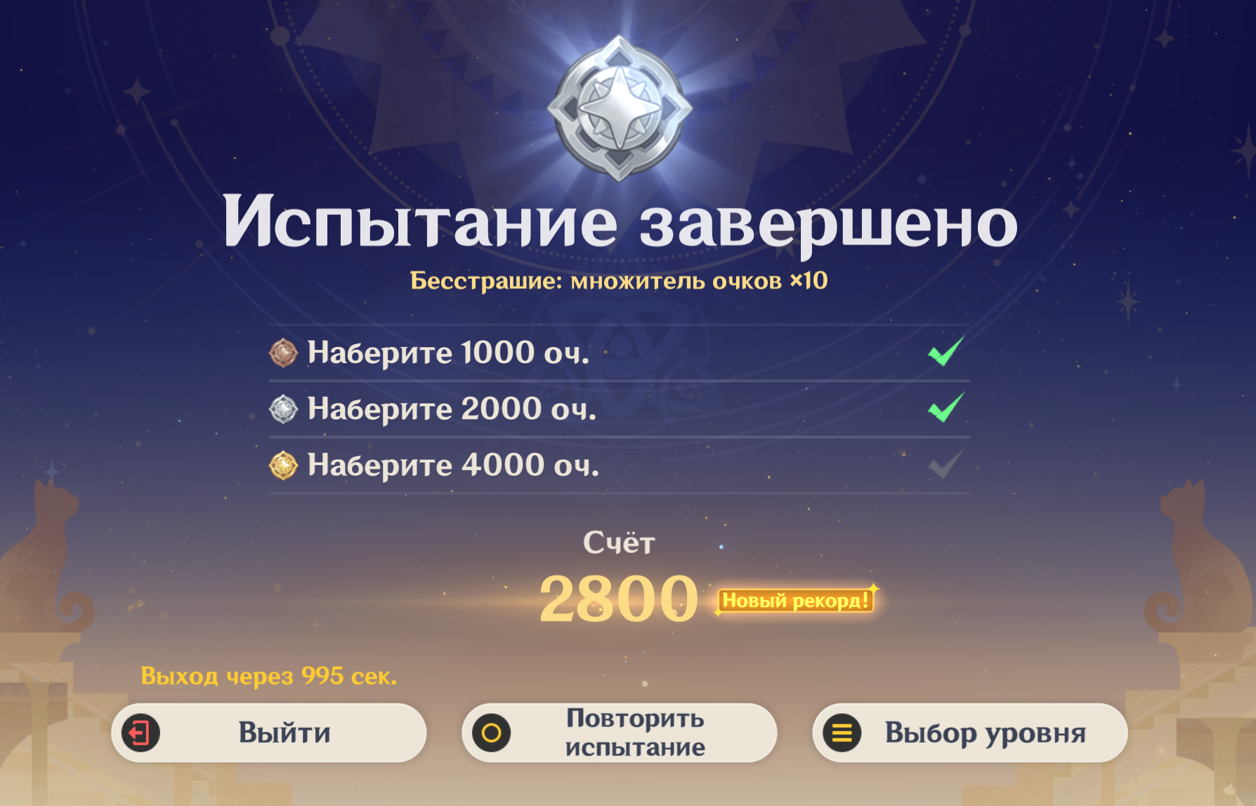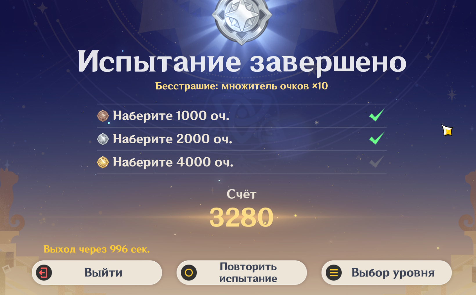 >>5903590 >не может в текущем боевом ивенте 4000 очков набрать. Покажи того, кто смог это во всех раундах на 4к очков закрыть, лол. Я только один раз 4к взял и то перепроходил этот уровень где-то полчаса, может час. Очень потел но видел, что забрать 4к возможно, по этому траил по потному. Но в остальных сколько смог - столько взял, но на фулл всё испытание закрыть может только донатер в игре.