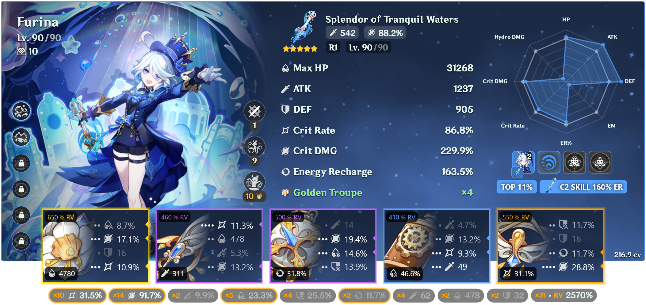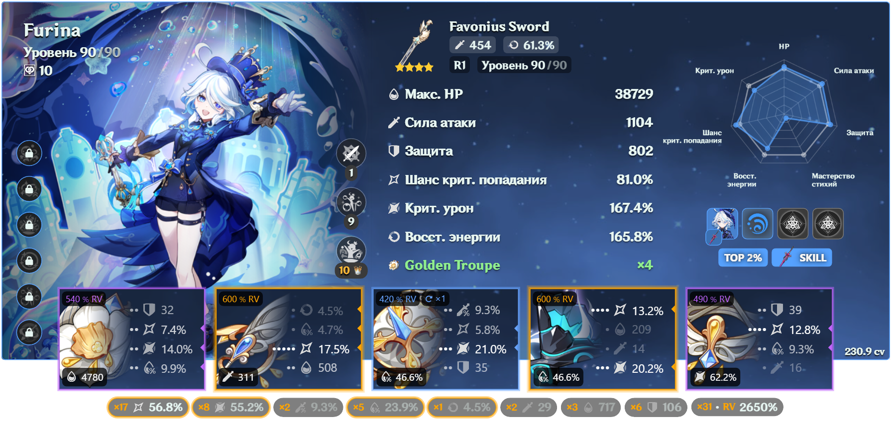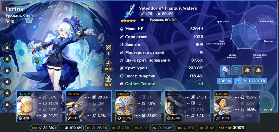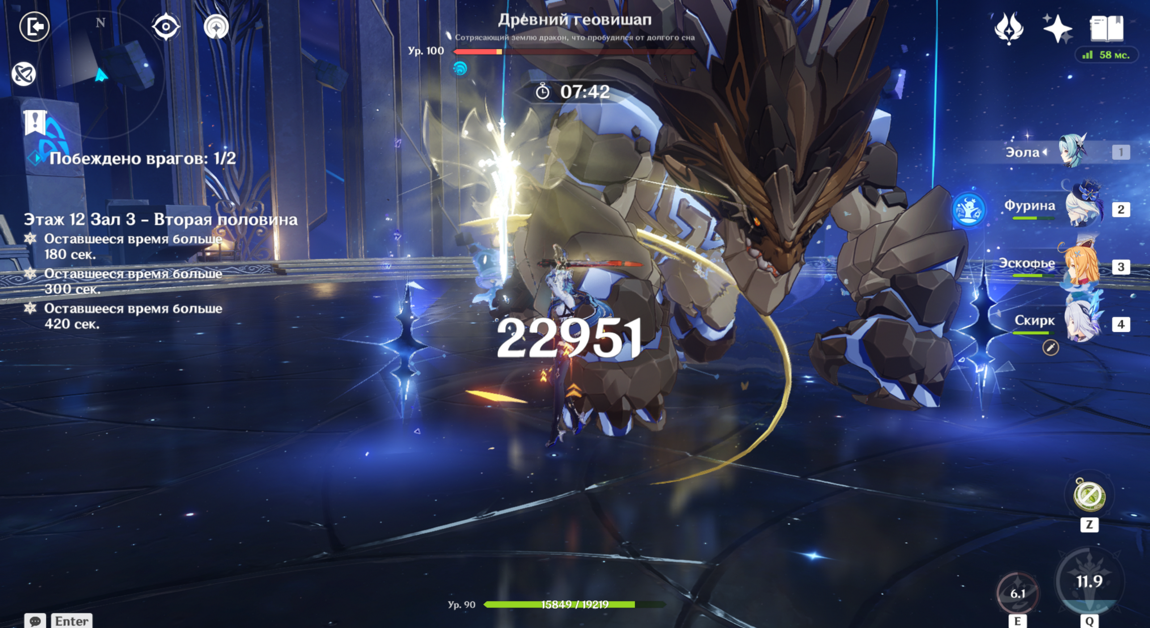 Показываю минимум какой должна быть Фуриночка.сейчас бегаю ЛаньЯньШило эскофье фурина.Да это не уровень идти натик 4-5,но всех боссов они закрывают попеновских.