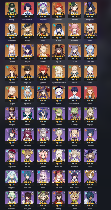 > Тут персы выходят один другого круче, глаза разбегаются Мы точно в одну и ту же игру играем? Я, честно говоря, уже заебался копить, у меня никогда так много круток на аккаунте не лежало, а это ещё и Нефер с Лаумой выкручены были. И они продолжат лежать ах до 6.3, а то и 6.4, ибо крутить откровенно некого.