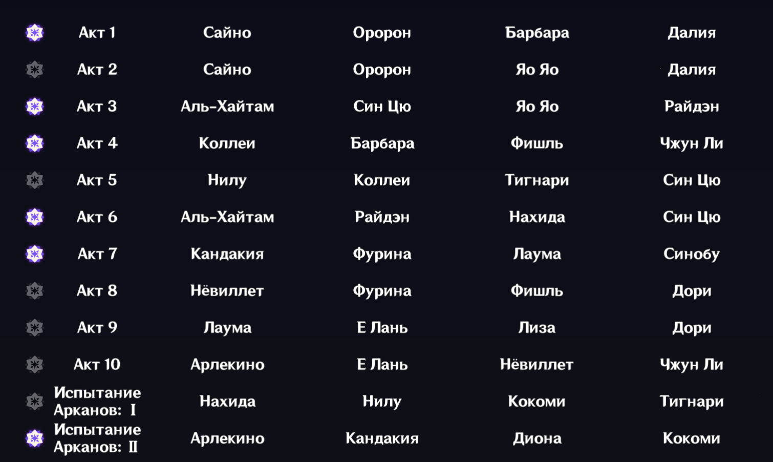 >>5902807 Я поковырял, первую половину проходят туалет Богиня дед робот, кирюша айно робот нахида, возможно могут пройти куки синий елань нахида, но я даванулся об 12-2, возможно поймал дендро иммун вжушк