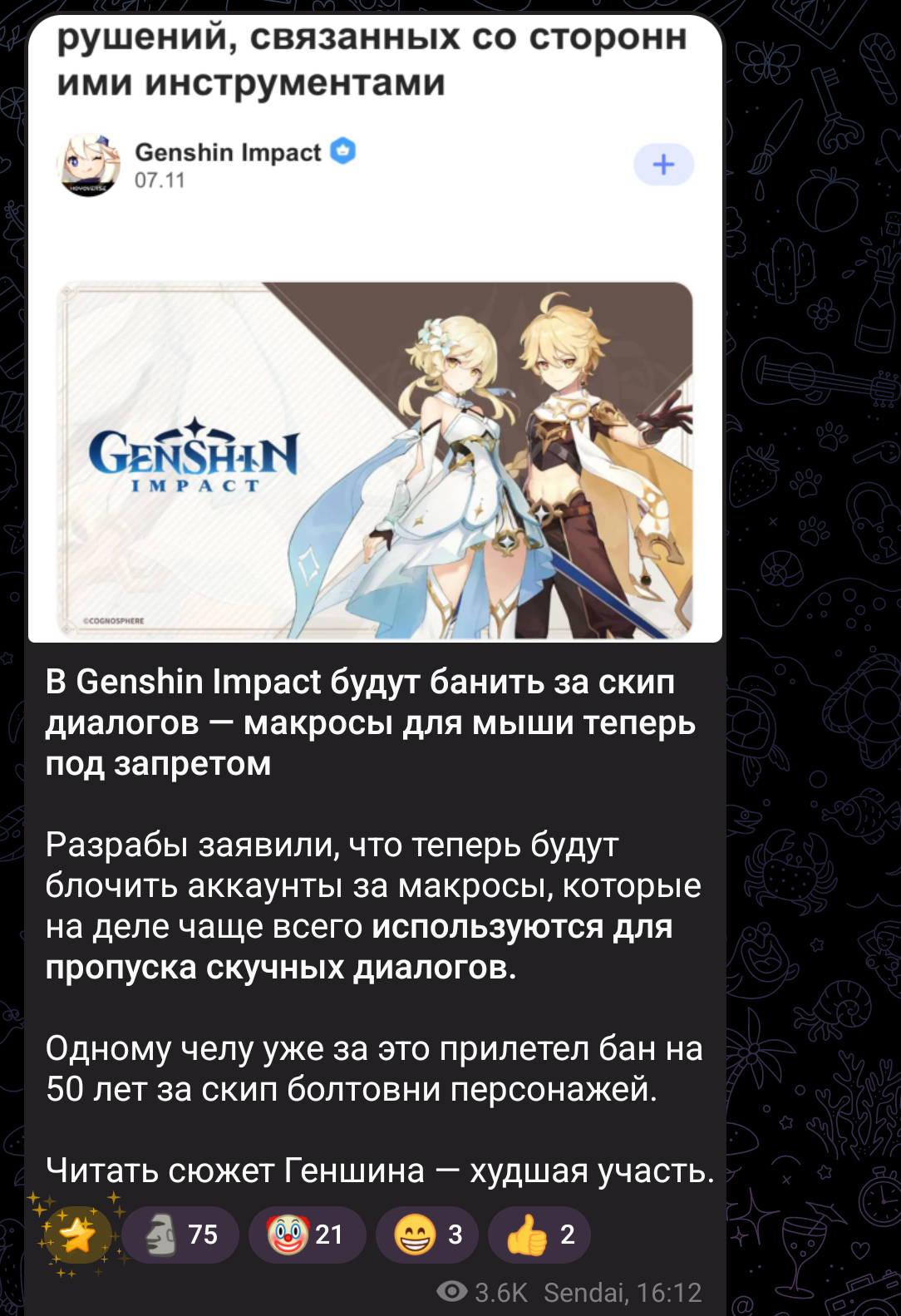 Я один очень скучаю по ламповым местечковым историям из 1.0-1.2? Помогать зайцам, мейдам и сыновьям матерей и наблюдать за работой копов было пиздец как интересно и чемпики там ощущались живыми, прямо как из добротного аниме. Все эти спасения миров и ужасные эксперименты культистов, что понеслись после, вообще никакого отклика не вызывают.