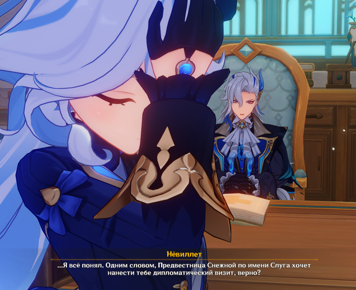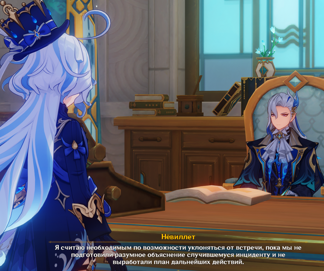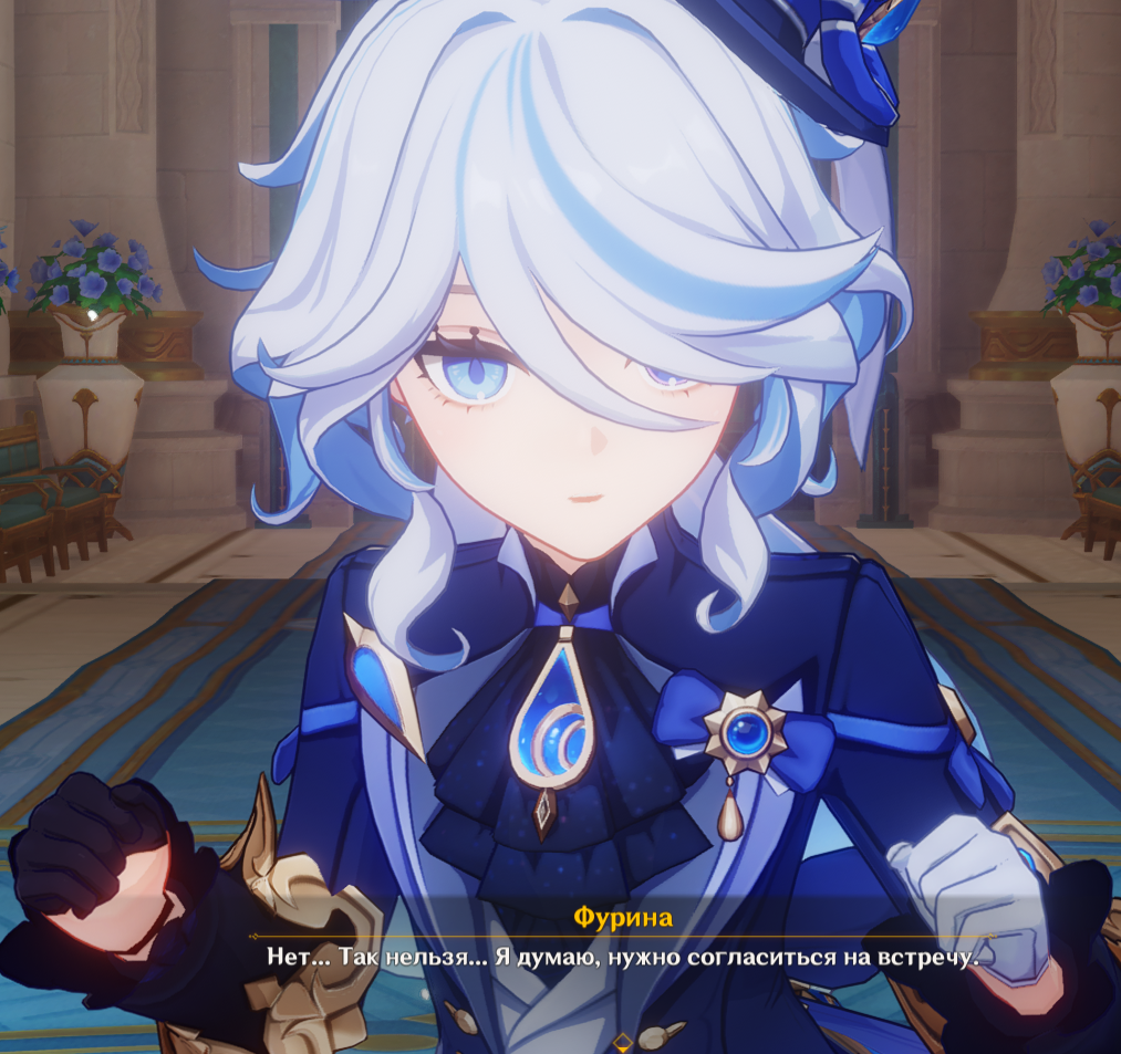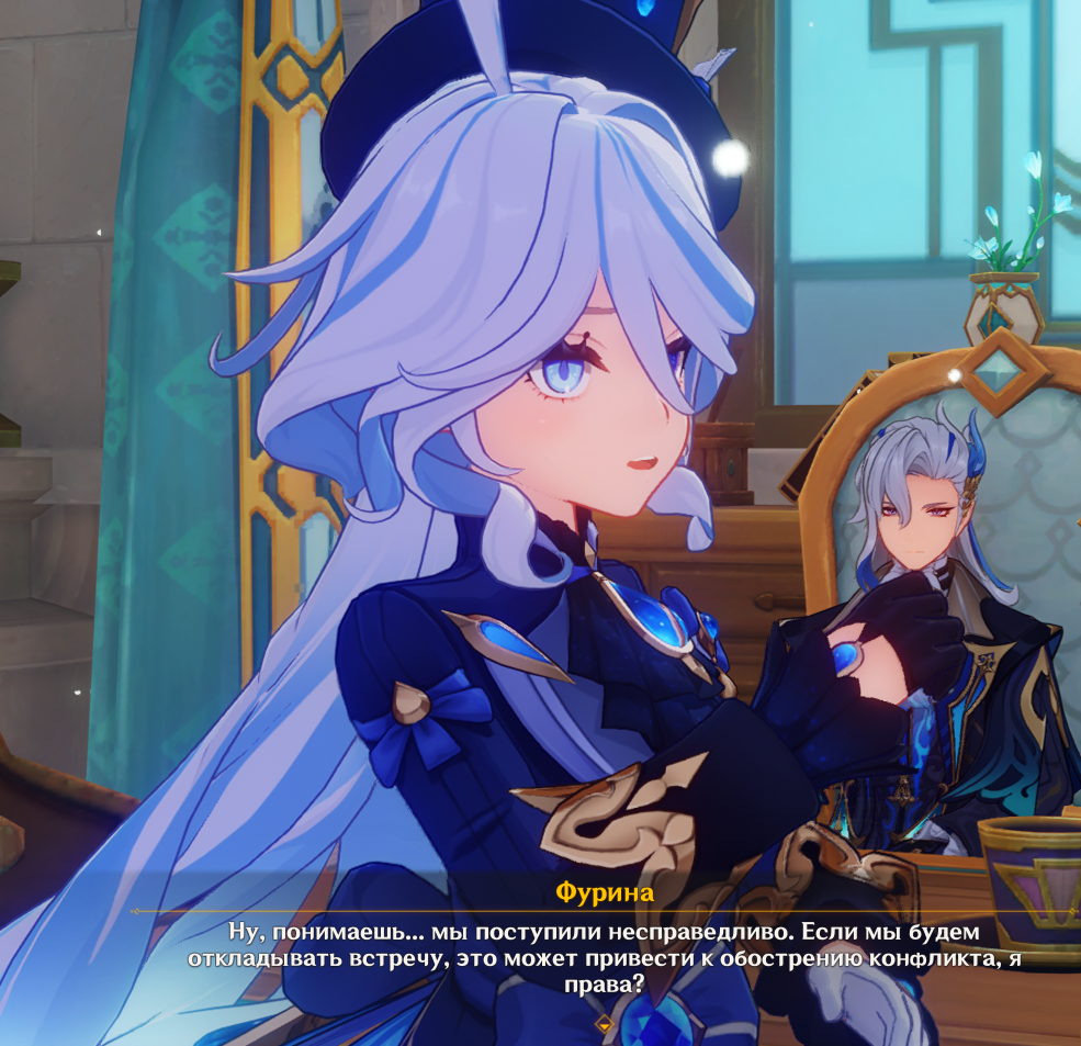 Даже мудрая Фурина понимает, что встречу откладывать нельзя - это лишь повысит напряжение... Вот кто истинный мозг и правитель Фонтейна, а вы говорите Нёвиллет да Нёвиллет. Если бы не Фурина - Фонтейн бы уже давно развалился.