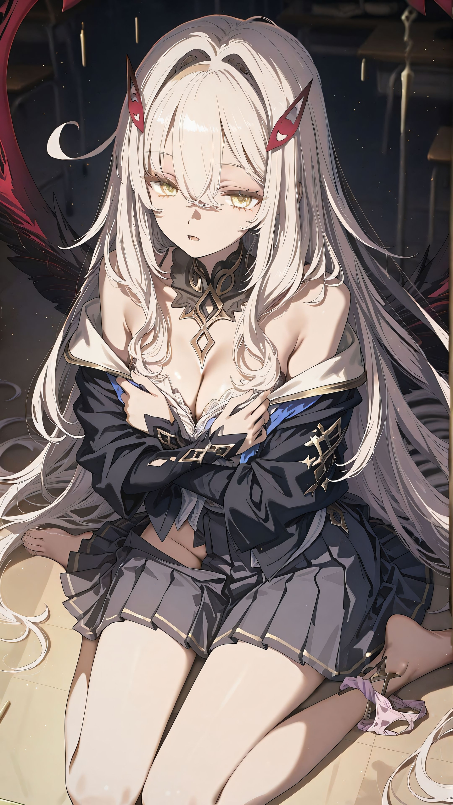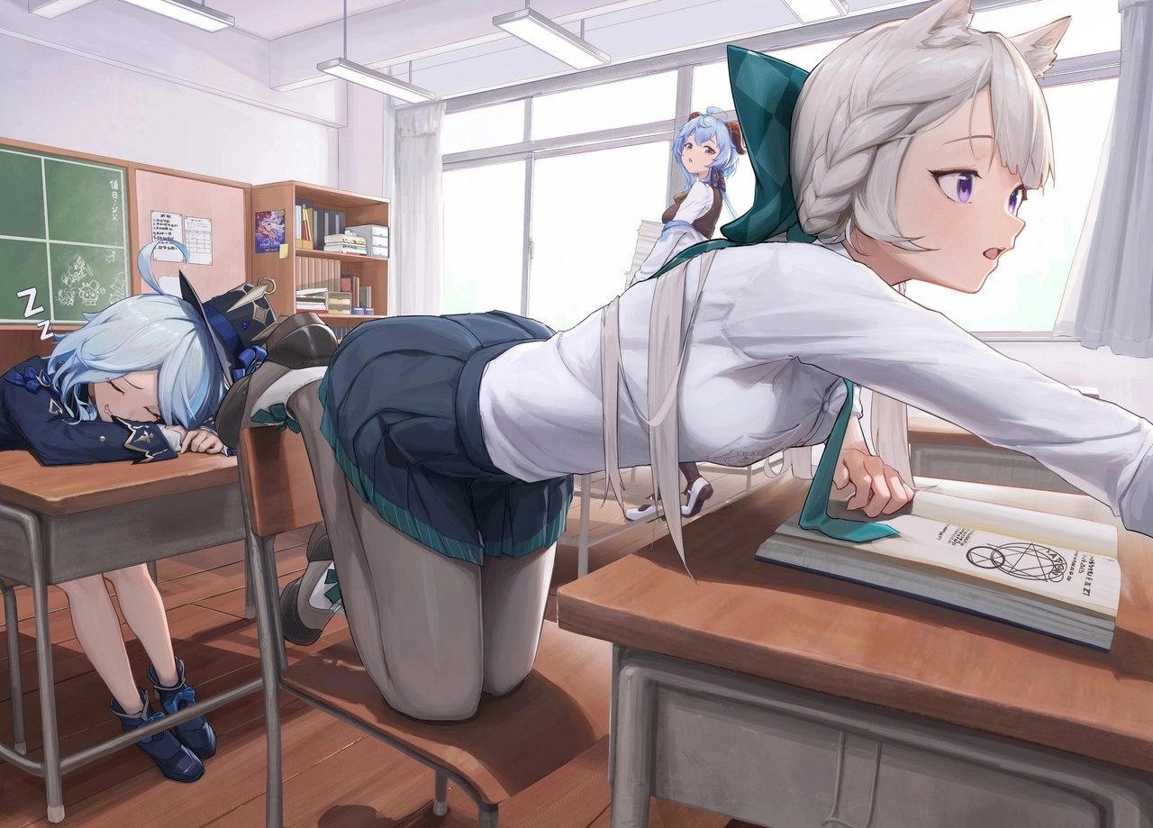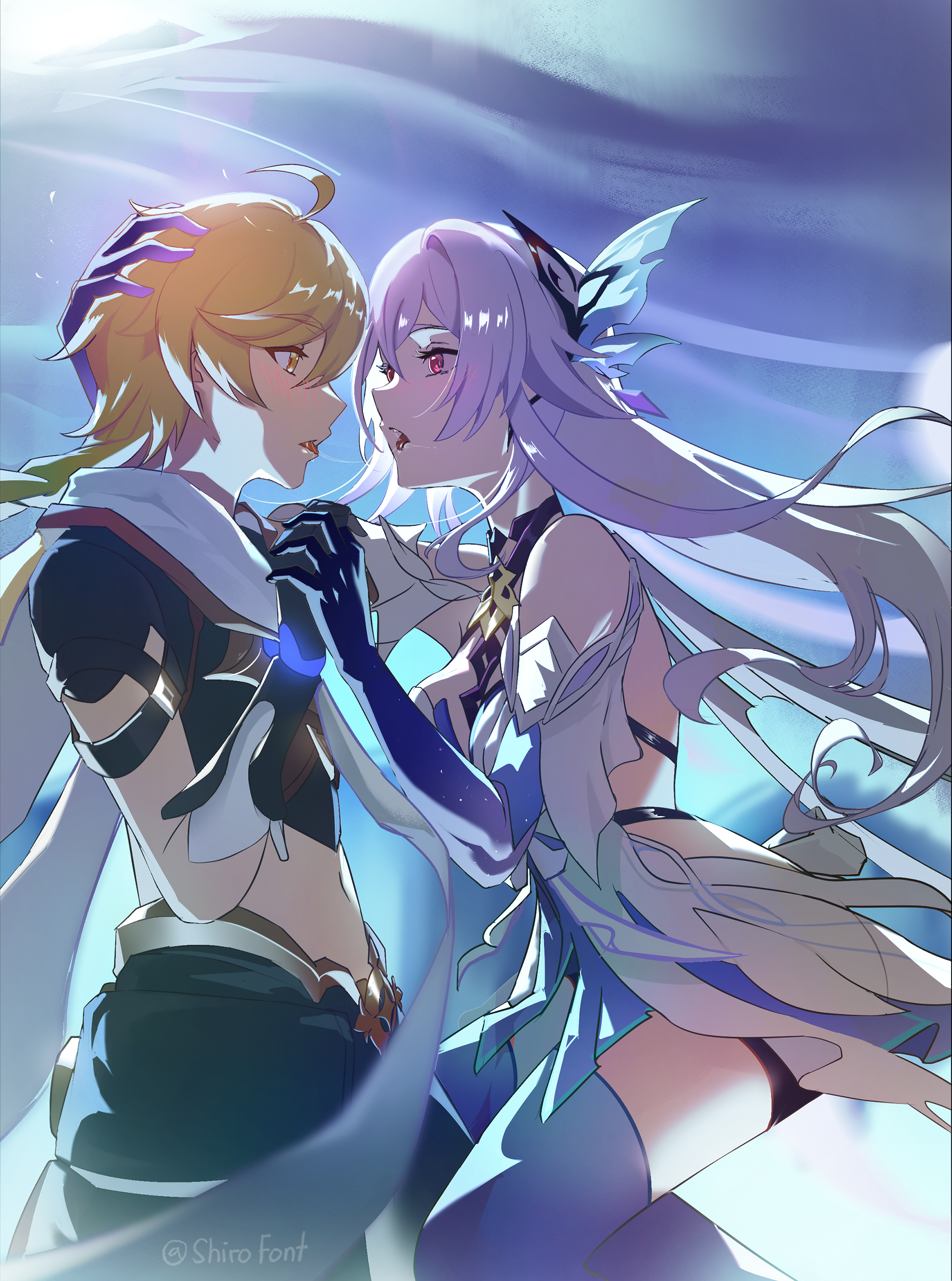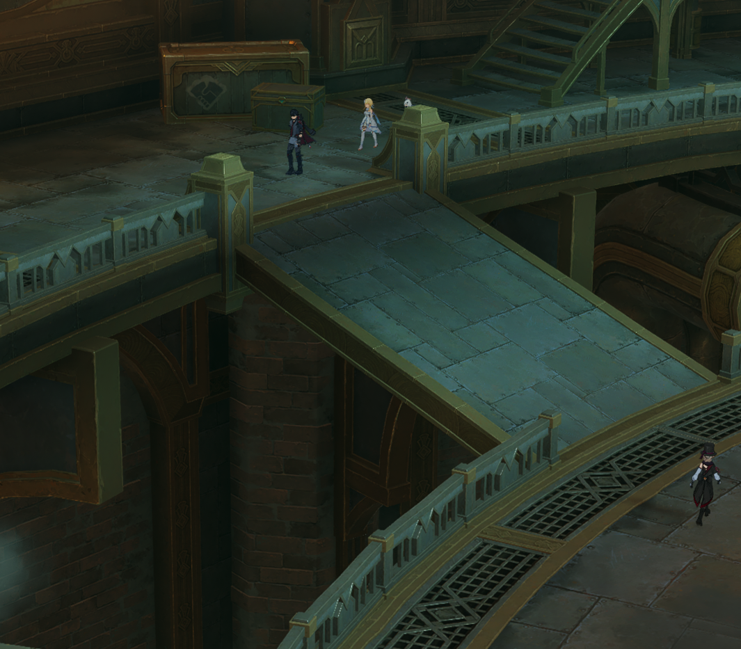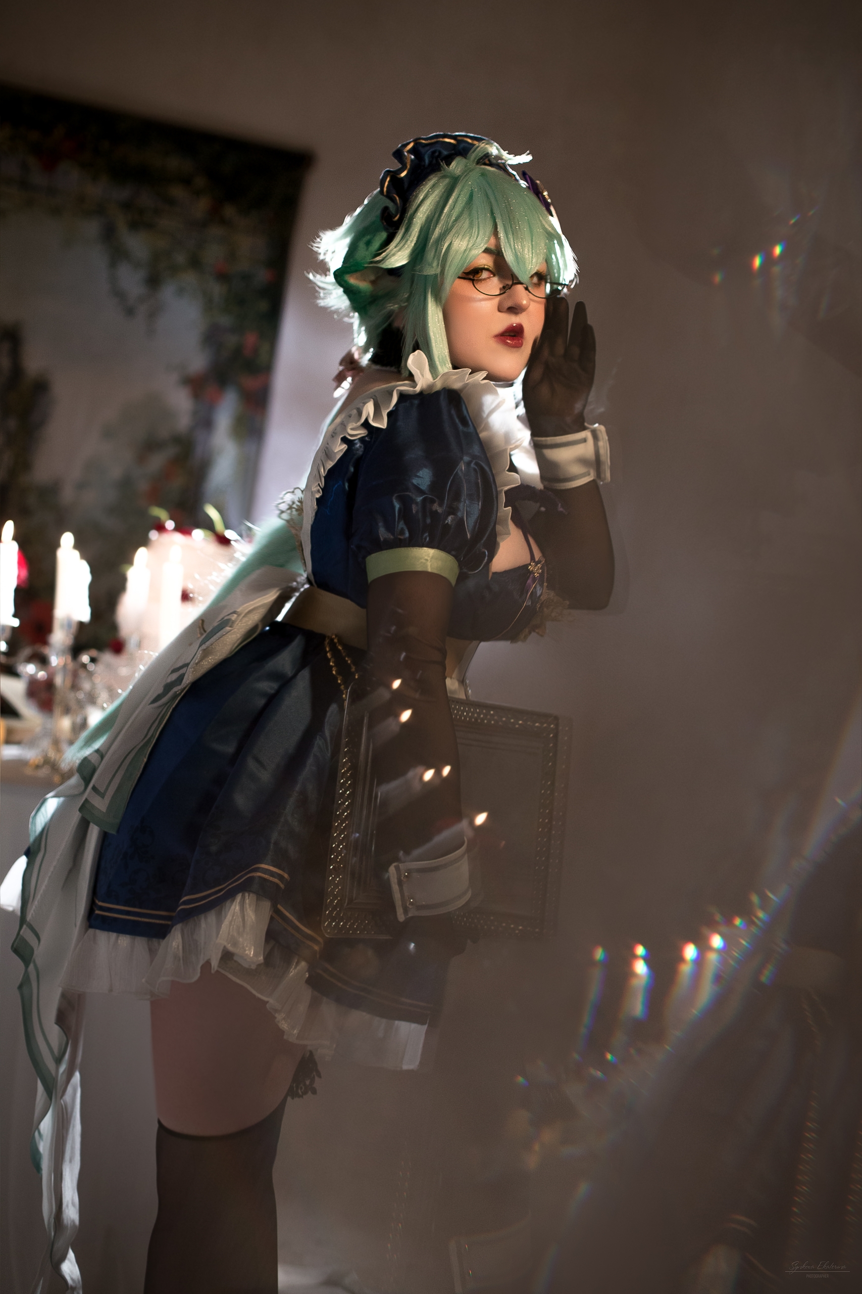 Комната в резиденции Фатуи. Сдержанный, почти стерильный интерьер. За небольшим столом сидят Сандроне и Колумбина. Перед ними — изысканный фарфоровый чайный сервиз. Сандроне с холодной, аналитической точностью поправляет свою чашку. Колумбина смотрит в окно на ночное небо, ее лицо озарено безмятежной, мечтательной улыбкой.