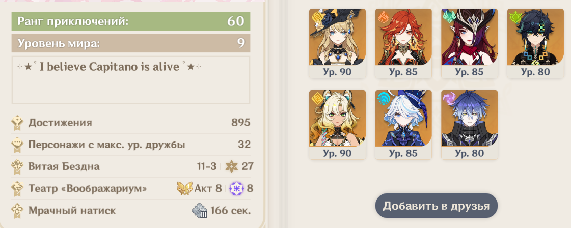 А в зетке, играя в том же режиме - я получил 9 лимиток, а суммарно 12 кост (с констами и сигнами). За первый год, блядь. И я не был в ноль выдоен, на второй год поскромнее, но уже 7 чемпиков выкрутил. 16 лимиток, за полтора года, блядь. Сейчас скажешь, что у тебя в Геншине столько же было за то же время, трепло?