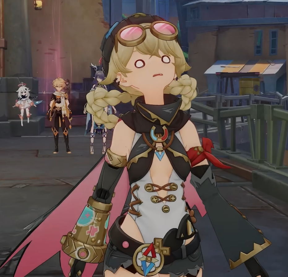 У Алисы слопный дизайн. Выглядит как всратый мод на Дыню, та же писешторка, открытые бубы (только тут цензурная монобуба), тоже коса, только не одна, а две, так еще хуета на голове какая-то. Короче, уникальных дизайнов больше не будет, просто разные комбинации хуячат на похуй как в Женовозе и все.