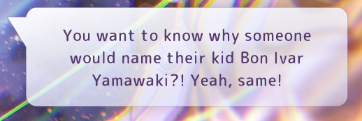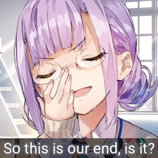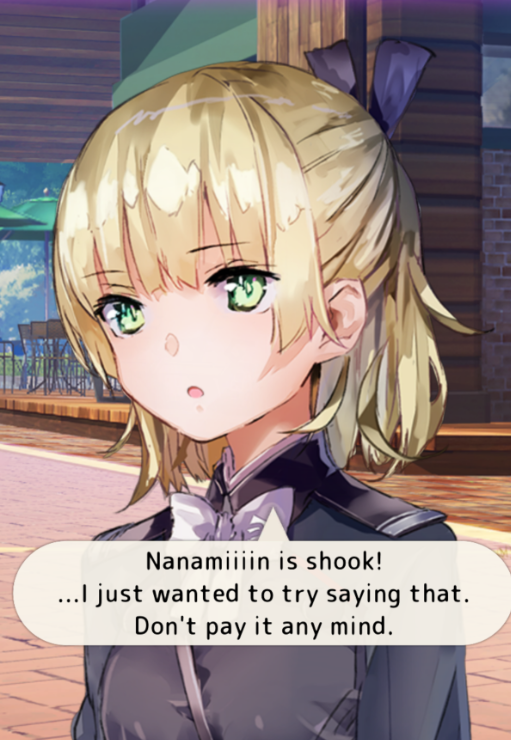 Эвент Айны прочитан. Даже не знаю. Такой классический эвентовый эвент со знаком минус. Был бы им прям недоволен, но под конец сентиментальная грустняшка таки хорошо зашла. А в остальном - развития сквада никакого, все просто по очереди говорят по реплике, классного юмора тоже немного - эксплуатируют одну и ту же шутку с рыбными палочками и гап моэ Никайдо (причем ее и в эвенте, и в мейнсюжетке буллят за нахождение на дне попьюлярити полла, она реально на дне?). Предыстория Айны тоже звезд с небес не хватает: ожидаемо рыбная, ожидаемо с океаном-разлучником. Под конец разве что все довольно стройно сложилось, и даже упомянули что всратая шапка матери Айны хранилась в очень хороших условиях, отчего отпадает вопрос о ее состоянии спустя сорок лет. Еще в эвенте больше данжевых побегушек, чем обычно. И нет концерта! И даже пикрелейтед для поста пришлось придумывать - ни подходящей цгшки, ни out-of-context мэмного момента в диалогах. Ну и что о нем думать? Между тем для 31-D уже выкатили эвенты всем, кроме Фубуки, и по настоящему хорошим я могу назвать только Letters on the Back, который в соло вытягивает этот грустный сквад. Лучше бы эвенту Фубуки быть разьебным.