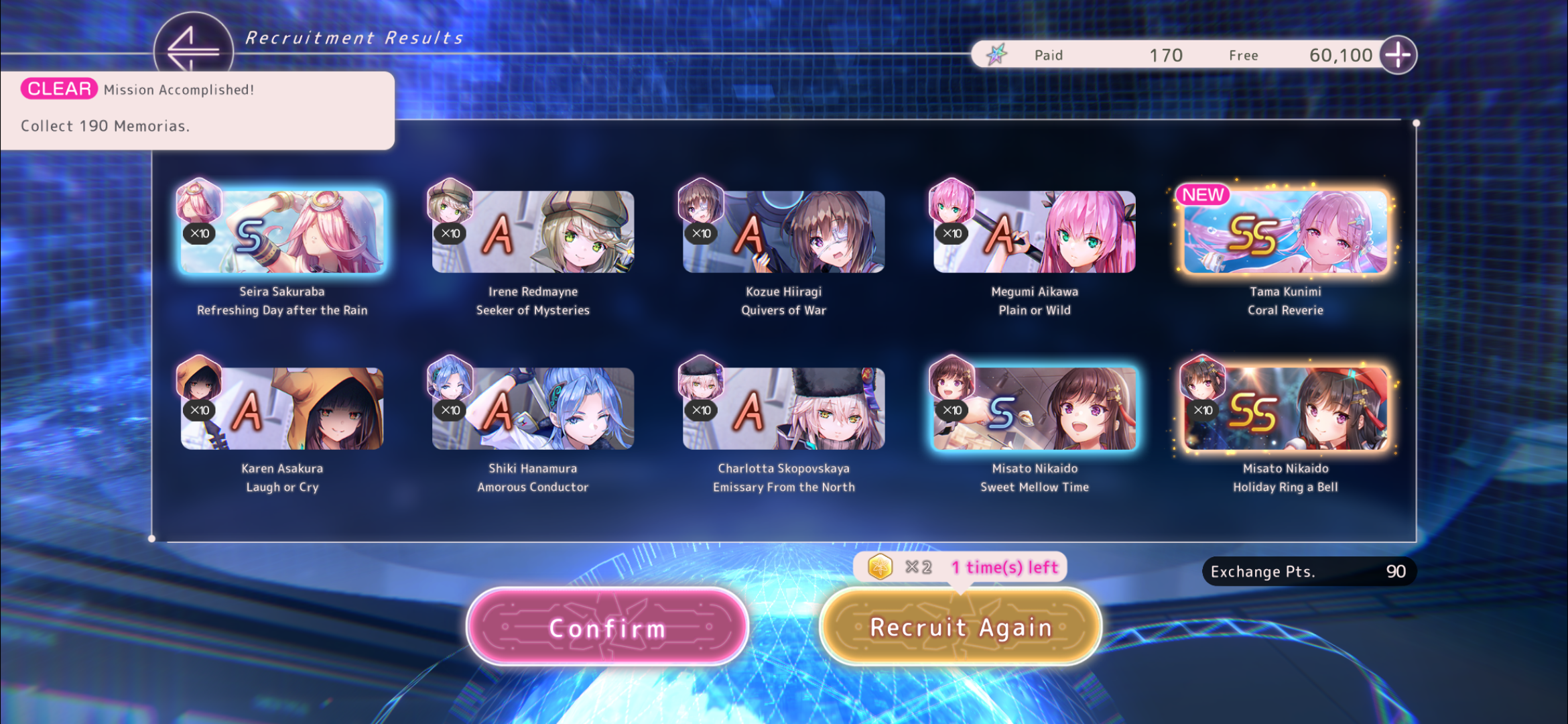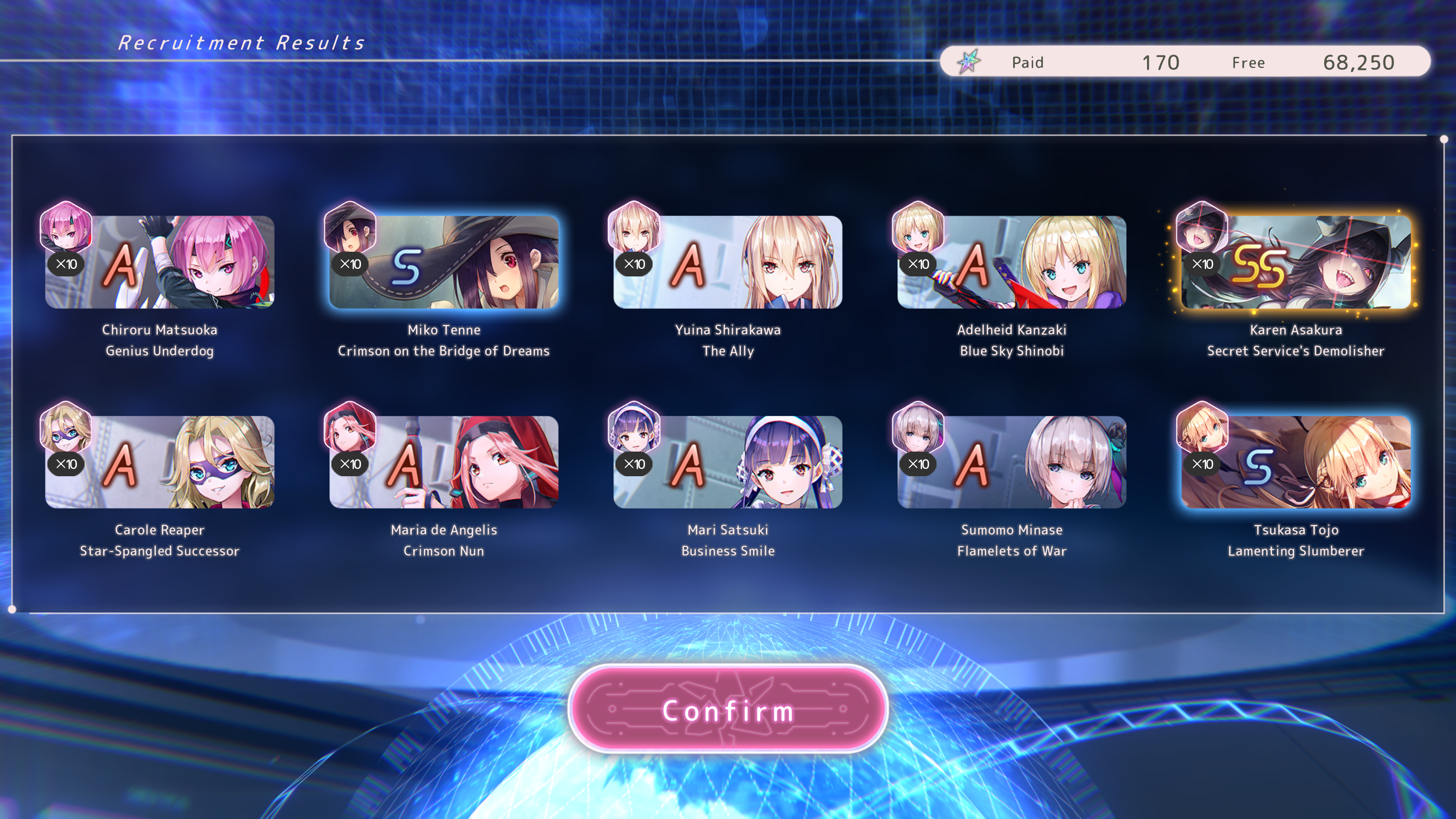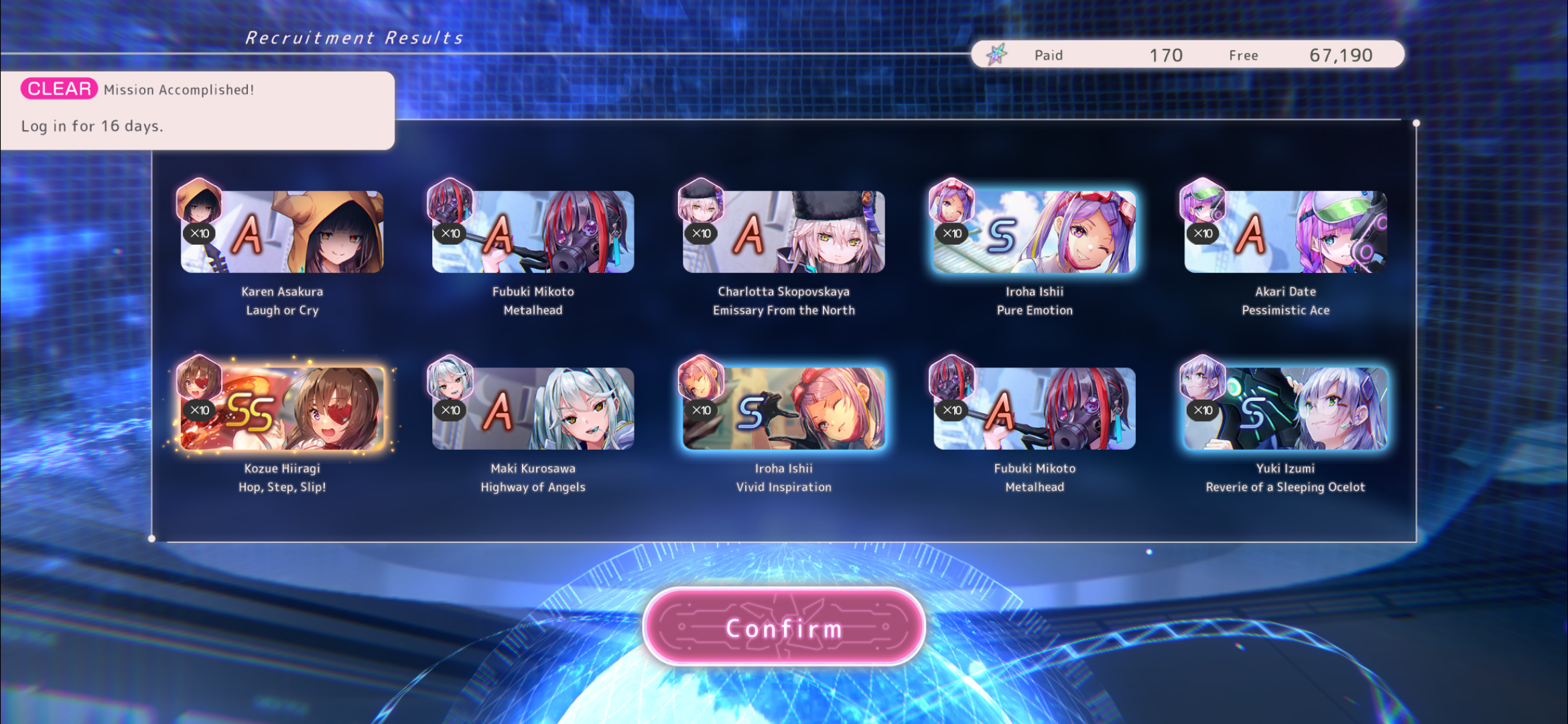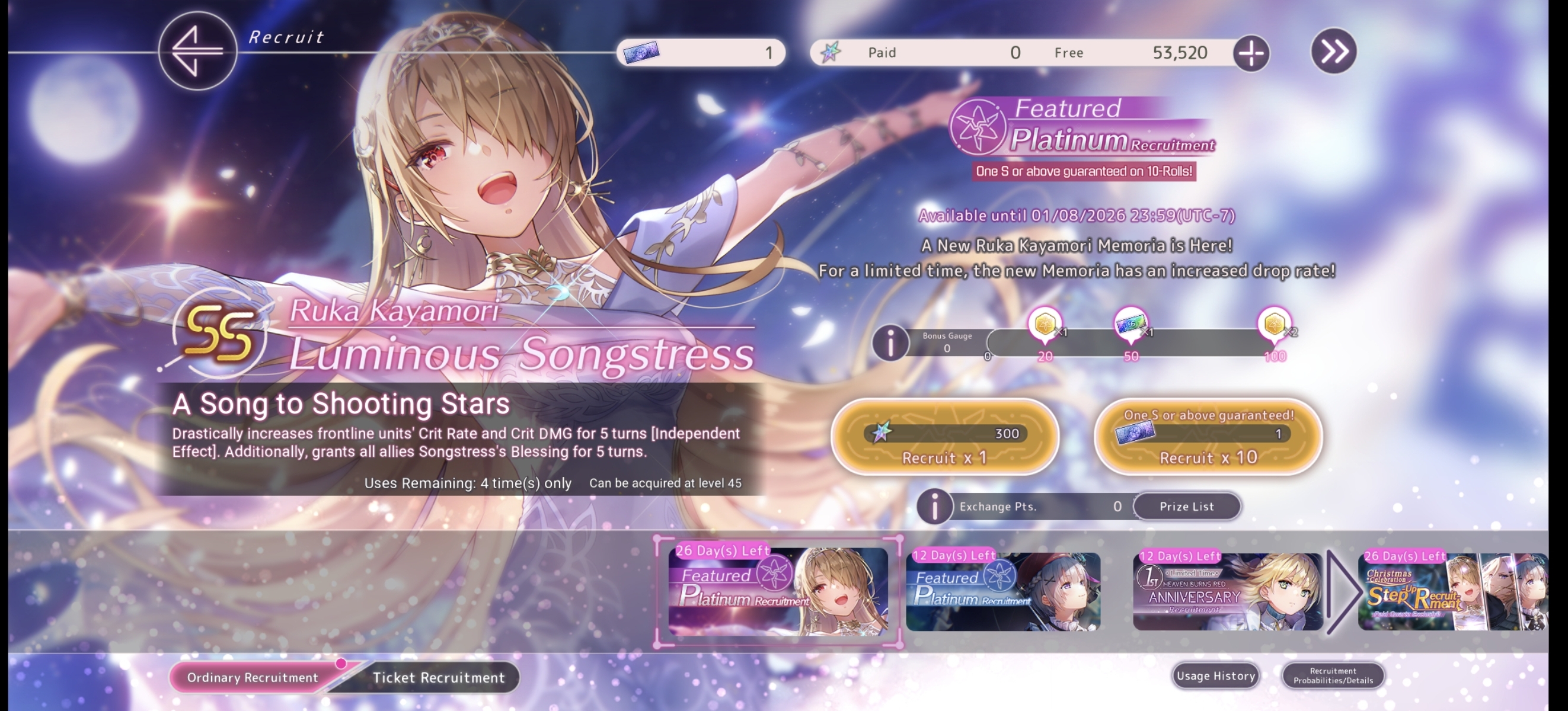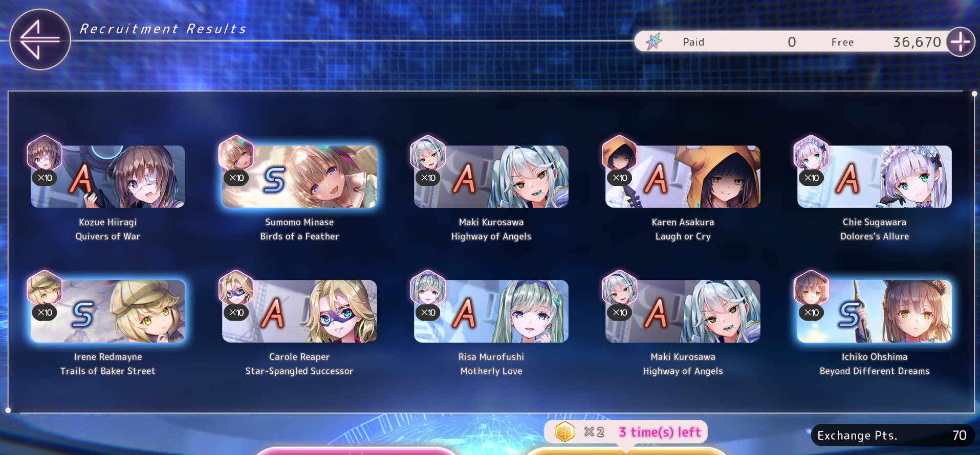 Только брал Шаро1 за зеленые билетики и вот она уже лб2 с фри тенроллов. Вообще ожидал, что раз в тенролле повезло, то на Нанасексе приклад будет, но в целом сойдет. Хоть и за 90 круток больше ни одной ss. Вот теперь думаю может до спарка доролить, Нанасекса много не бывает...