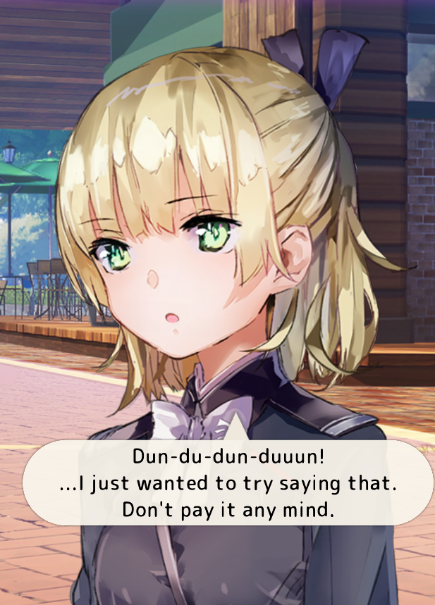 Когда то обсуждали ивент Ирене говорили мол Англия показана каким то карикатурным 19 веком, но тут дочитываю ивент Мии и не лучше. А потом вспоминаю ивенты Адель/Мари/Хисаме/Инори там еще не лучше. Такая же карикатура вне 2042 года игры, только про Японию.