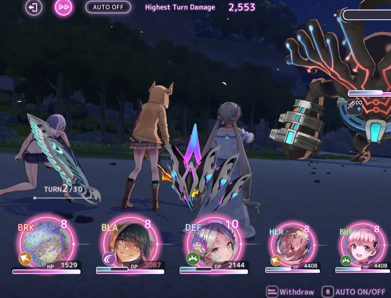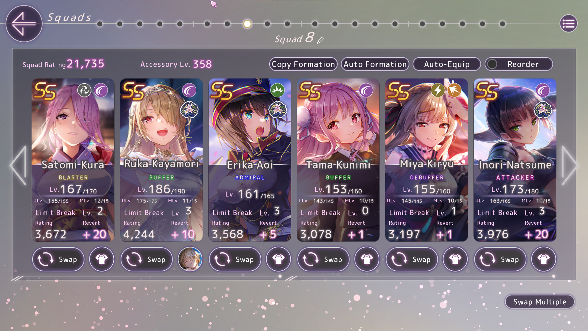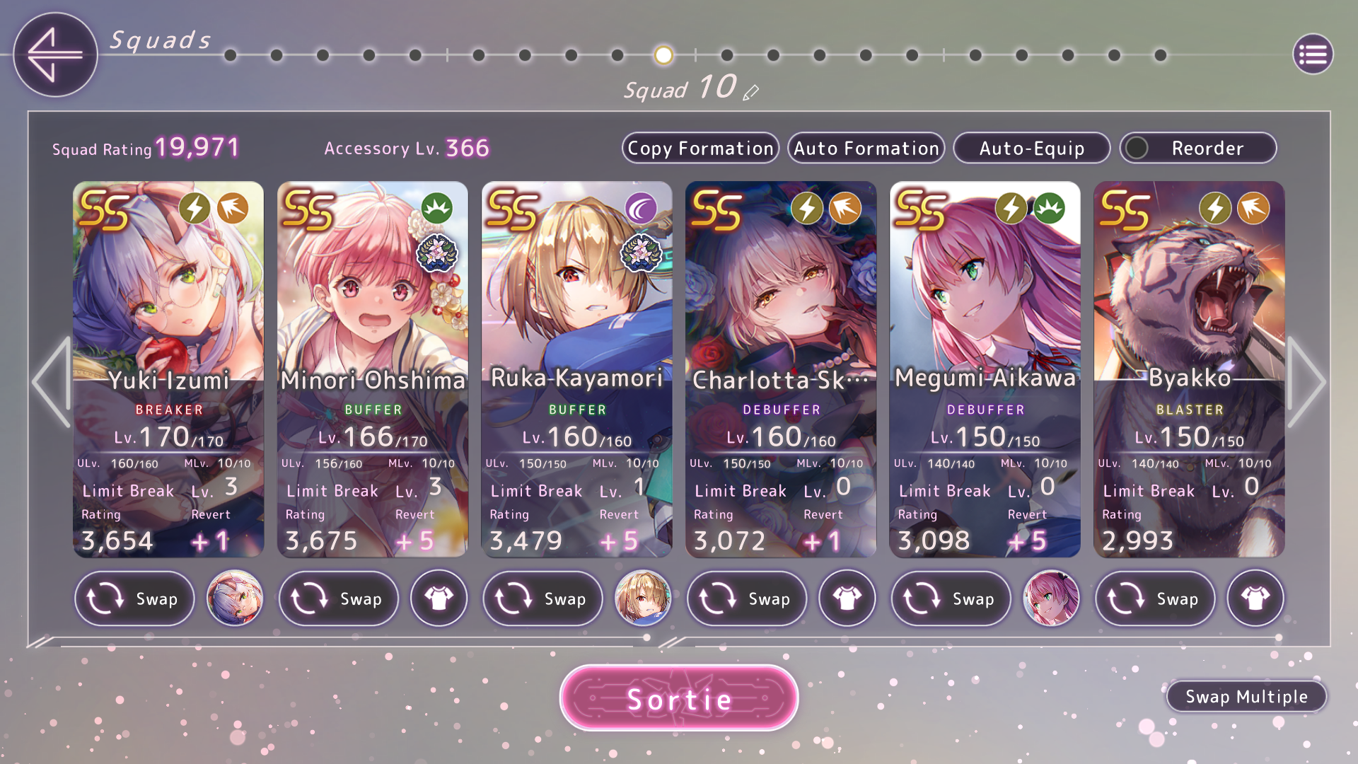 Жесть. Это на отвали составленная пачка, используемая для орб боссов и параллельной прокачки двух тел (в данном случае Юины и Мууы... Мууи... мерзкой грязной свиньи короче, как её имя вообще склоняется, я хз), которые тут просто сидят. Кнопки прожимались почти наугад. А что начнётся, когда появятся всякие унисоны Карен и зондер-команда ролеплееров 31-С?