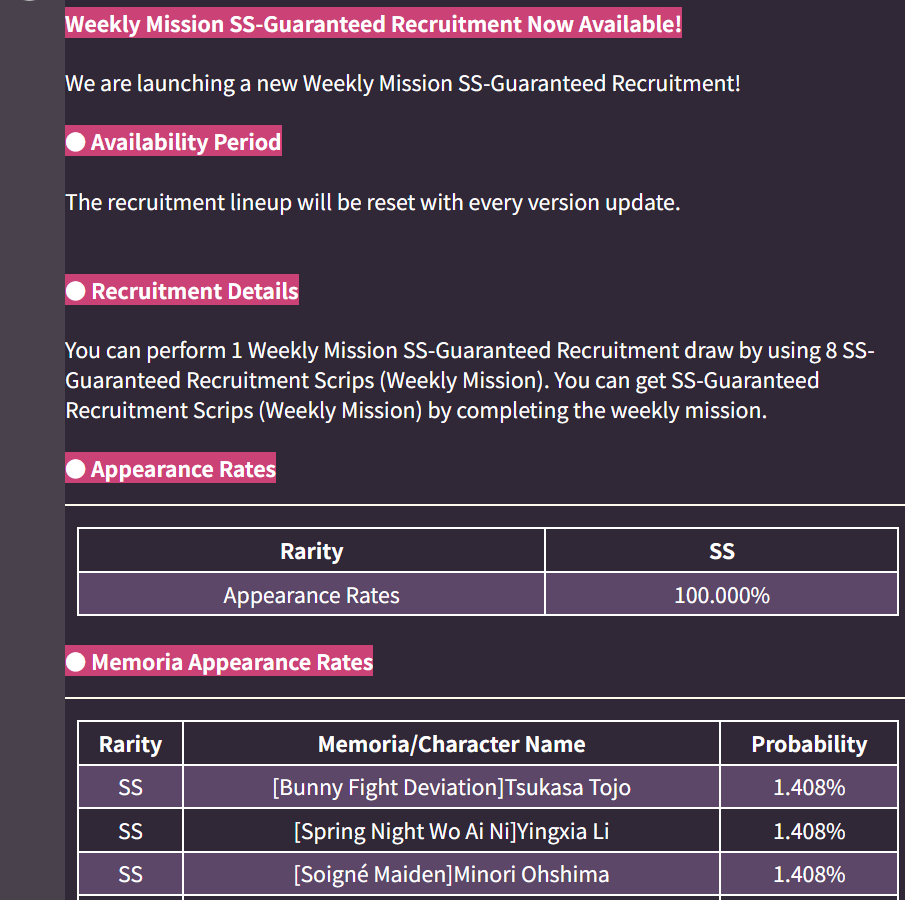 >>5984216 >>5984247 Они только уберут сс1 из баннеров за платный и бесплатный кварц. В остальных фри тикетах всяких и ss билетах и тенпулах за 0 кварца все будет также как и было.