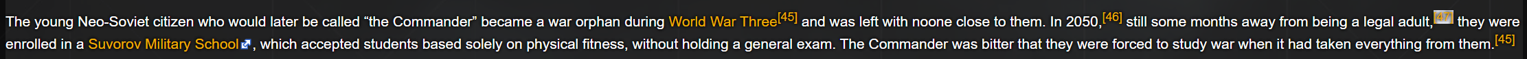 >>5959954 >>5959970 Ну, вот такая инфа на IOP вики. Я неё взял про 40+ Based on the information of Convolutional Kernel, and considering that 18 is the age of majority in Russia and China and the minimum age of conscription throughout most Soviet and Russian history, it can be reckoned that the Commander was born around 2032, the same year as Angelia. By this calculation, they would be 30 at the start of Girls' Frontline (2062), 32 at the end of Girls' Frontline (2064) and 42 at the start of Girls' Frontline 2: Exilium.