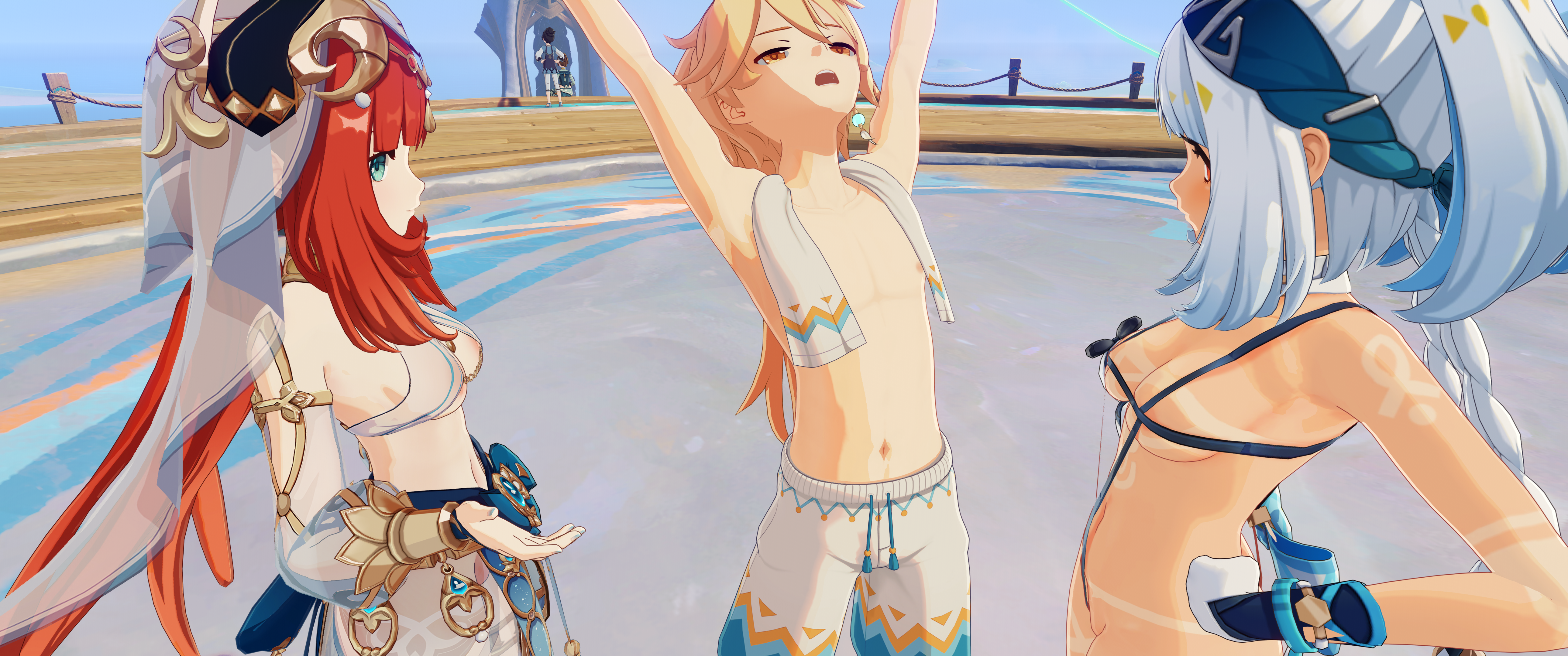 Я выкрутил Ризли, потому что он выглядел круто, как Рэмбо или какой-либо другой нормальный мужицкий мужик. Потом я выкрутил Навию, потому что она капитальная красавица с медовой писей и в целом хорошая женщина. Клоринду я выкрутил из-за колготок и груди, а ещё, потому что она подруга Ризли и Навии. Это мои любимые персонажи Фонтейна, люблю их!