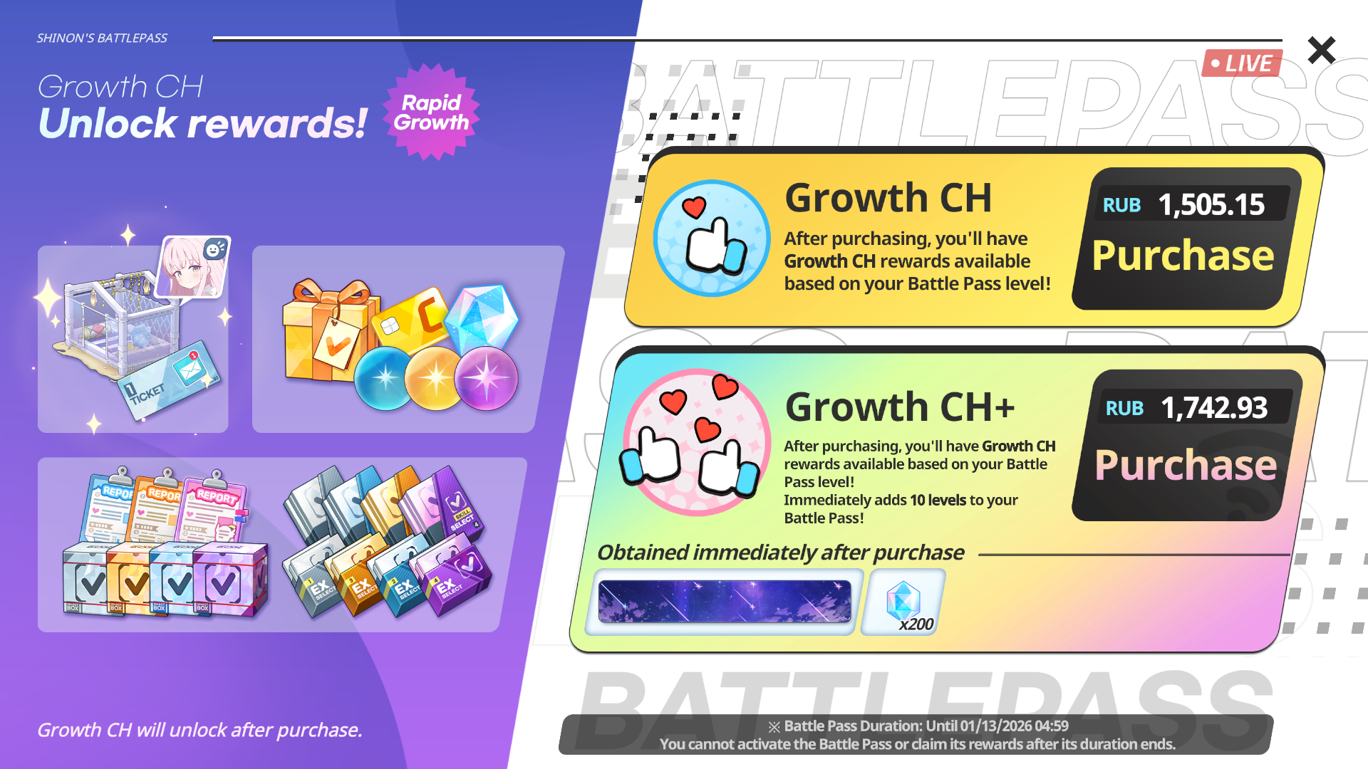 >>5976253 Базовый: 20 круток Базовый + платный: 45 круток. Ещё есть второй платный тир, он немного дороже, даёт ещё 200 пироксенов и анимированную плашку у ника.
