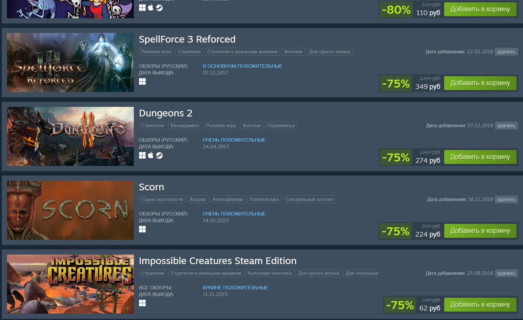 >>6059661 А, ты из этих, кто познает мир через нейронки. Ладно, давай помогу тебе. Процентов 80 здесь всякий порно-мемный-нейронный-нонейм мусор, который даже бесплатно добавлять в библиотеку зашквар. Все остальное либо старье мамонта по 90% скидке, которое скорее всего на новых компах и не запустится даже, либо очень популярные лоупрайс тайтлы, которые все и так давно купили, либо новые и относительно новые игры 4к гейминг без учета длс. На 1.5к разве что повезет хоть 1-2 нормальных, чуть постаревших игр относительно урвать. Либо новое длс на скачи мочи на корабликах, которое вышло недавно. .