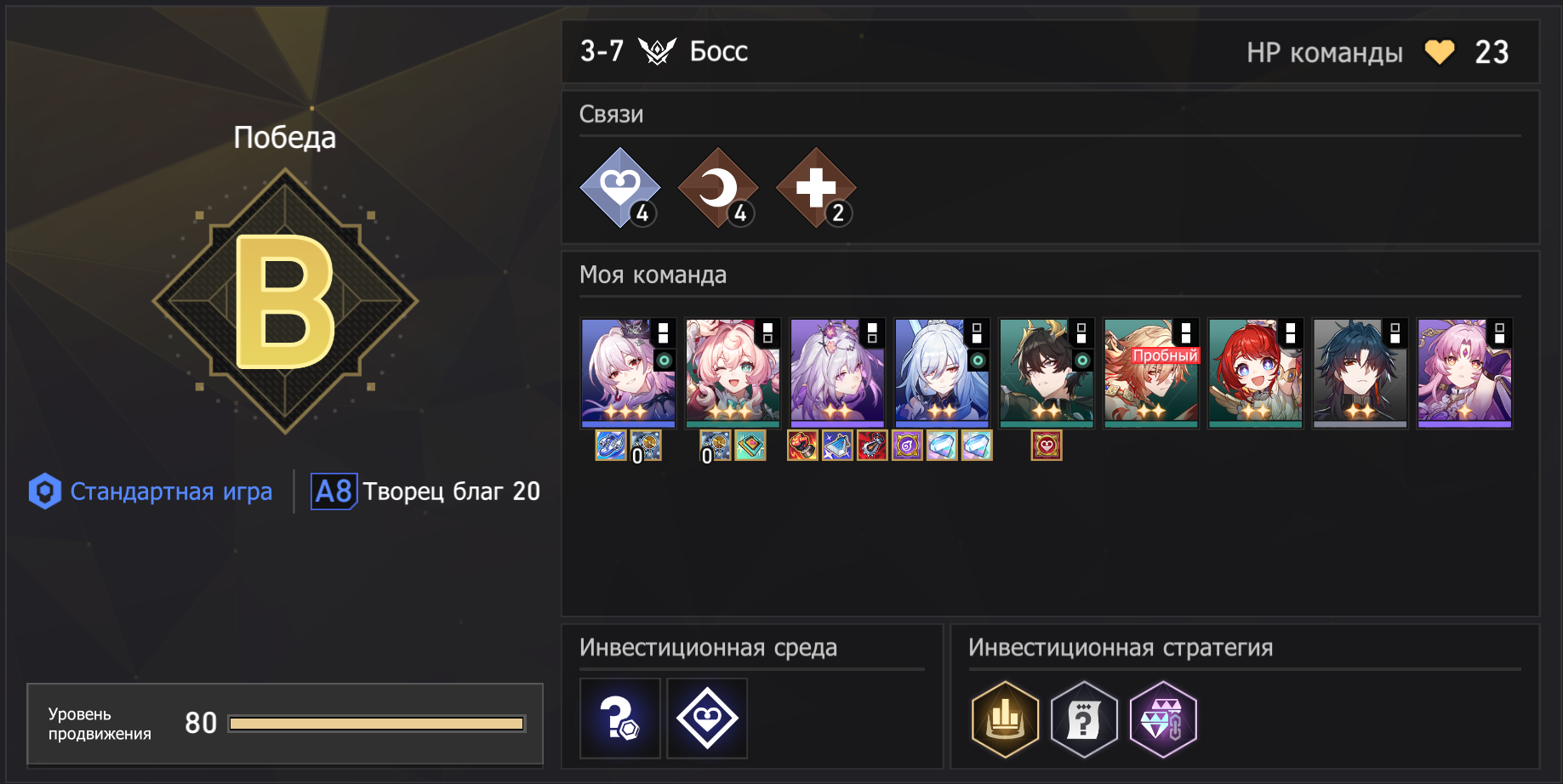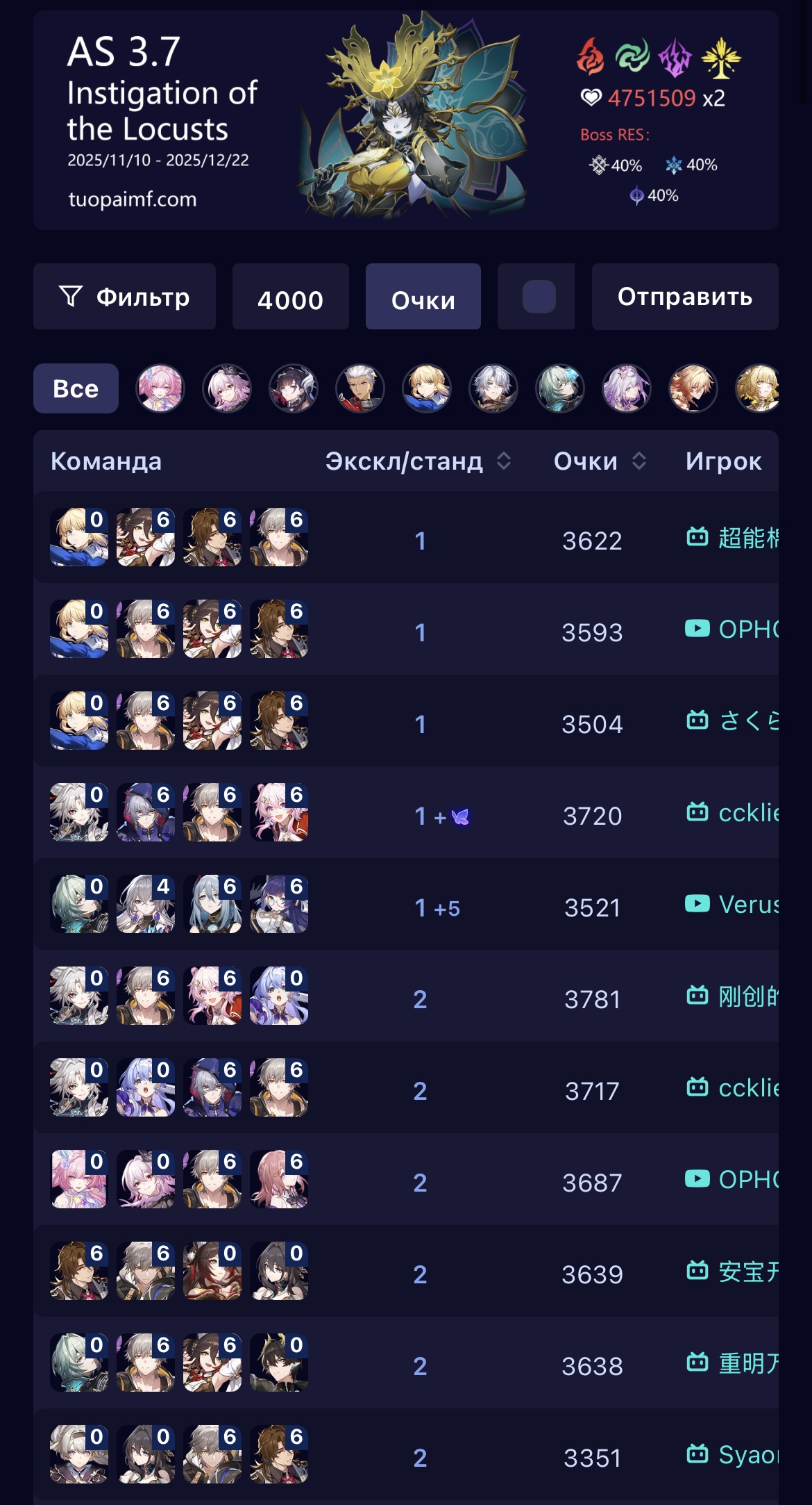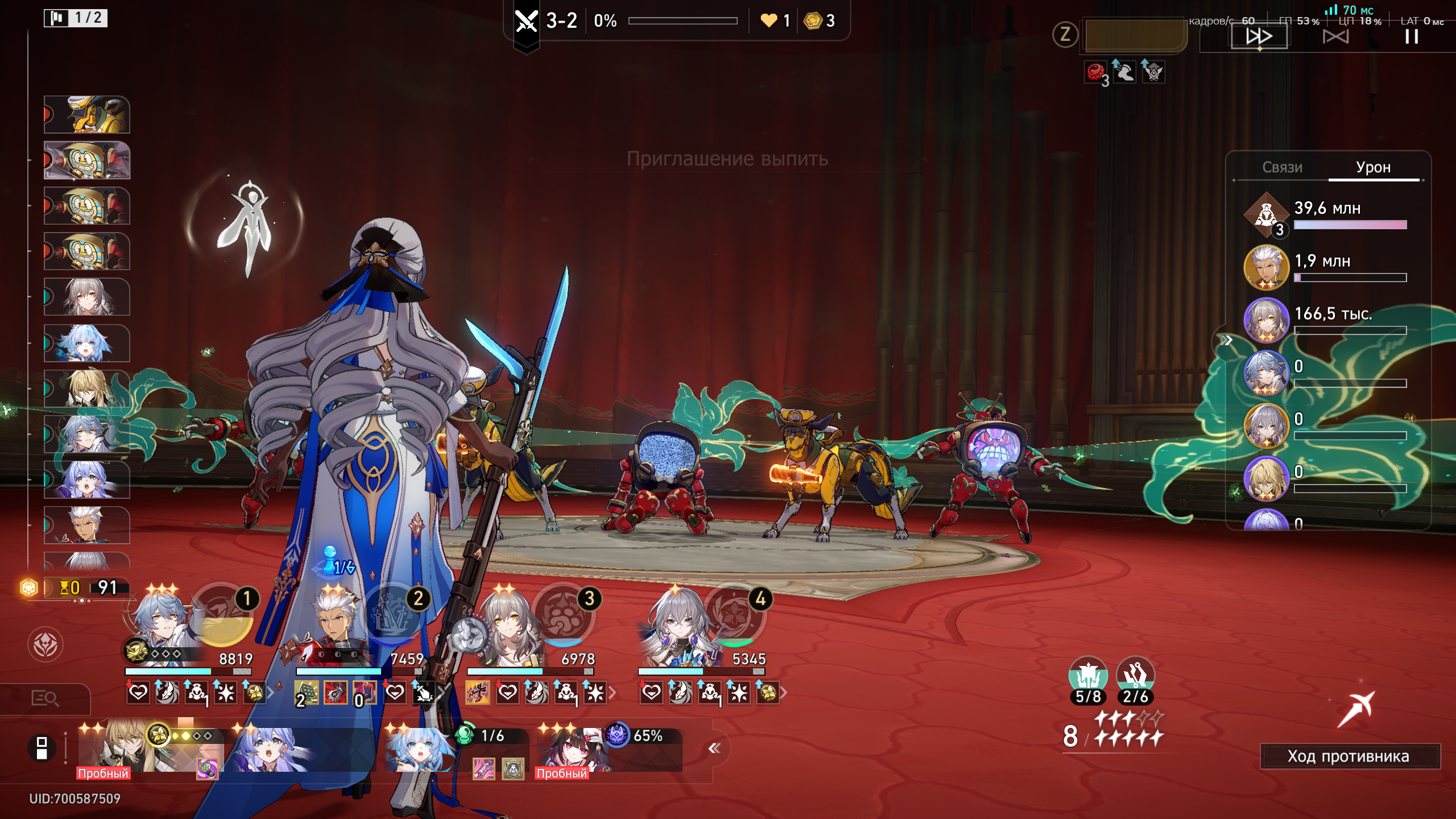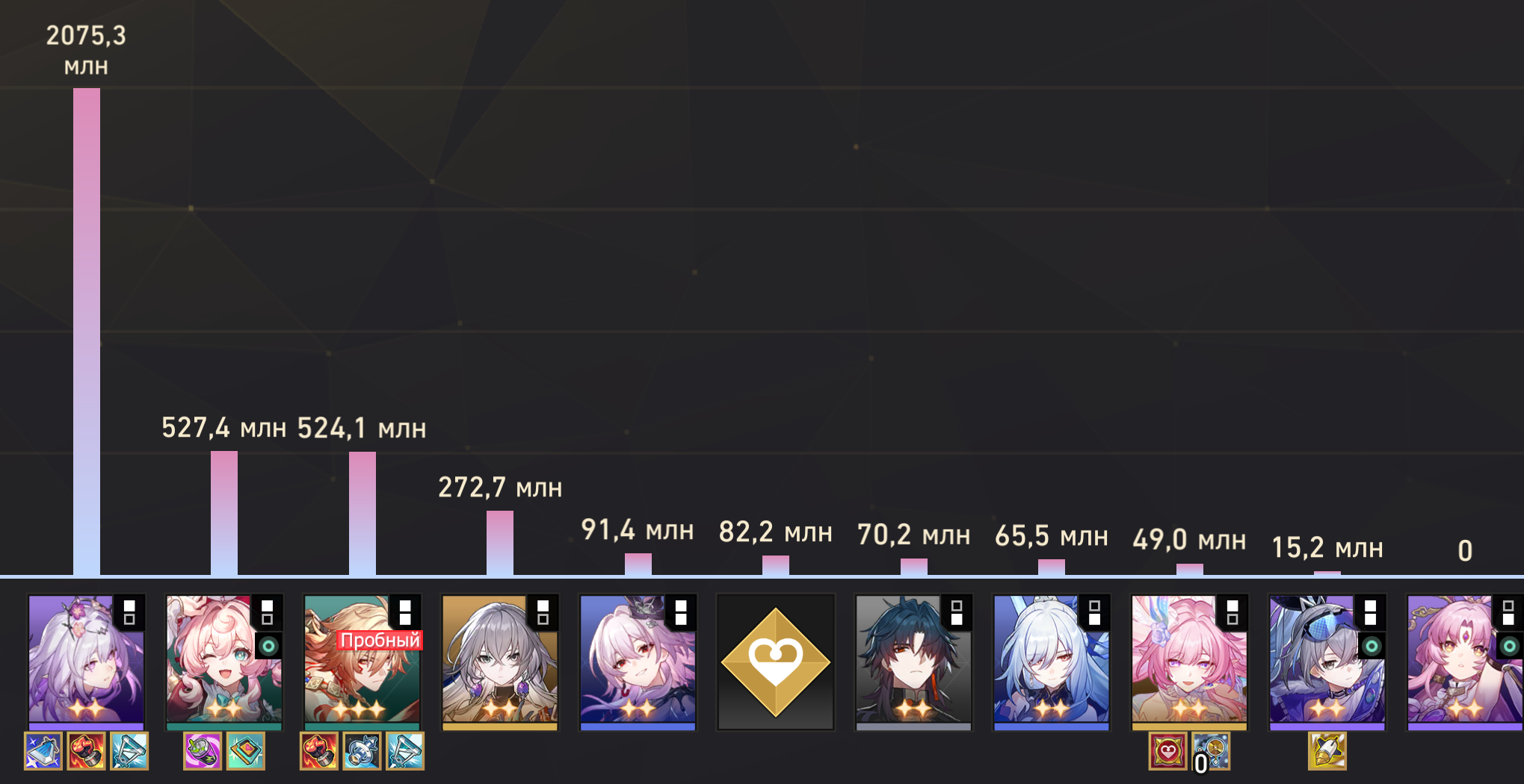 Если посмотреть сайт китайских доширачников у меня минимальный эффективный кост я имею ввиду сигноэйдолоны реально имеющие импакт, е1с1 Гис, е1 Кафка, е0 Кирена, е0 Данька без своей сигны на котором возможно золото этой пачкой. Единственная разница, там лучше релики, в основном Гисиленса быстрее на 8-10 скорости. Но я даже тупо не понимаю механику этого ебучего РНГ босса, она то рандомно убивает пачку, то не убивает, то дамажится, то не дамажится. Как это вообще работает блять.