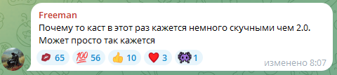 >>5955217 Сосисон ниже всех, вот это мощный флоп обещается. Бомж на тизере чуть ли не больше всех реактов собрал, а в итоге, дал мощнейшей подливы. Что будет здесь не поддаётся представлению.