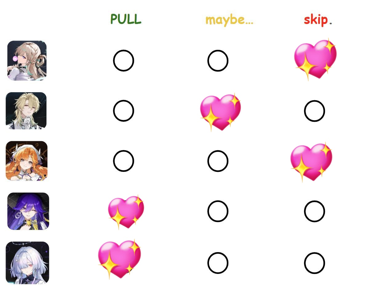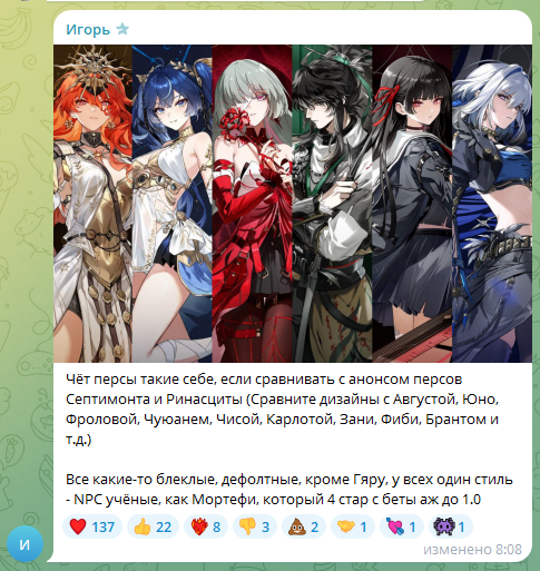 Короче прикольные вроде персы, единственное новый сосисон не понравился, прошлые выезжали за счет яркого собирательного образа (пират, ронин) и типо такие реально базовички были которых крутануть не западло пацану, а этот ну какой то ээээ чисто для паймон как будто