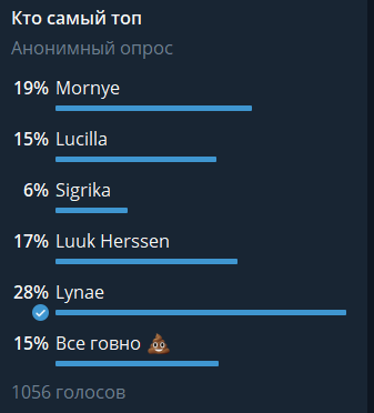 >>5957433 >>5957429 Заметили кстати как после стрима все забыли про Чису? Пожалуй можно уже подводить итоги по количеству выкрутивших. Все равно никто больше крутить не будет. Сколько там на вуватрекере?