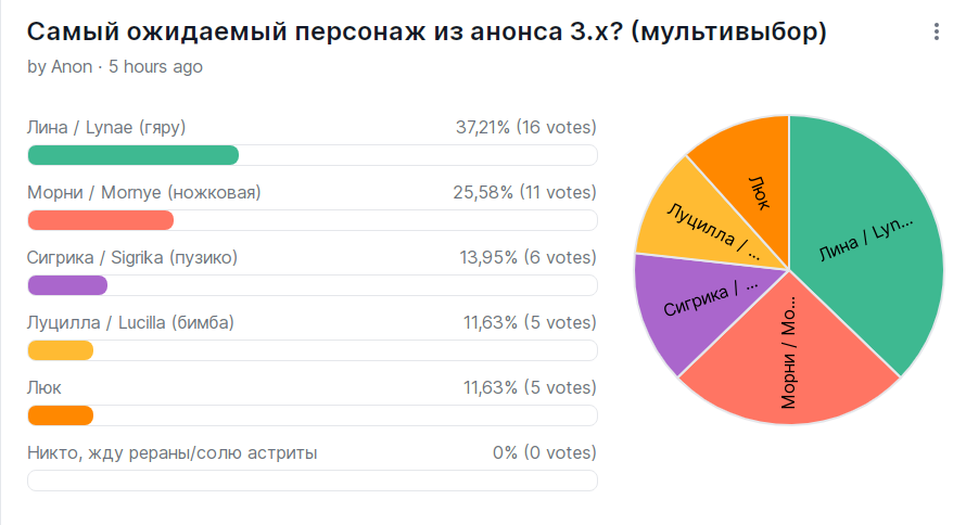 >>5957306 Это ведь голоса тредовичков по анонсам, а не овнершипу, сравниваешь бананы и торты. Я когда Фиби впервые увидел, то подумал "что за уродец со сплющенной головешкой в тулупе" и плевался, а потом когда в её выпустили и в триале погонял 2 минуты, то сразу влюбился в эту пошлячку с милой улыбкой и щёчками, крутыми анимациями, сразу же выбил, еще и простая геймплейно с хорошей ф2п пушкой.