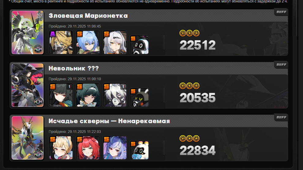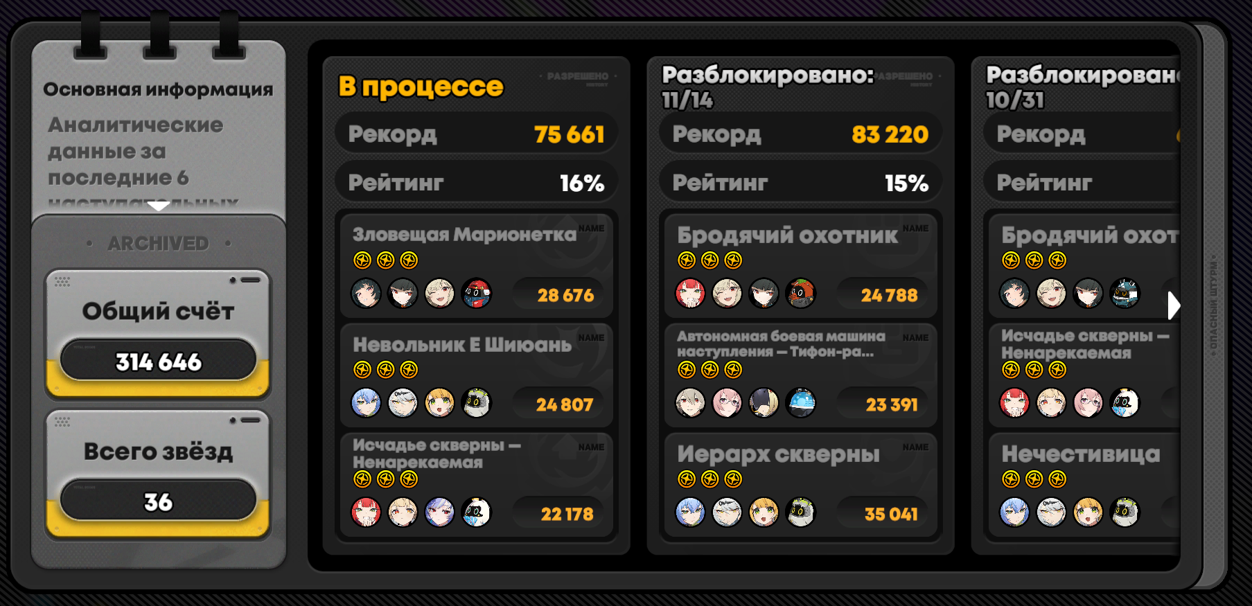 >>5972070 Оч мало. Но справедливости ради, скажу, что играл левой пяткой и не траил даже. Последние 2-3 месяца вообще хуй подзабил на игру, а раньше траил штурм и шиюй по 100 раз от нехуй делать. Захожу только на дейлики, и то часто пропускал дни, ивенты и сюжетку скипал в самый последний момент. Хотя несколько ивентов проебал даже. Вон, игра даже в гаче подкрутила, чтобы совсем не забросил. Даже сейчас начал заходить в игру каждый день, чтобы ВХ не пропустить, может потом снова интерес появится к игре.