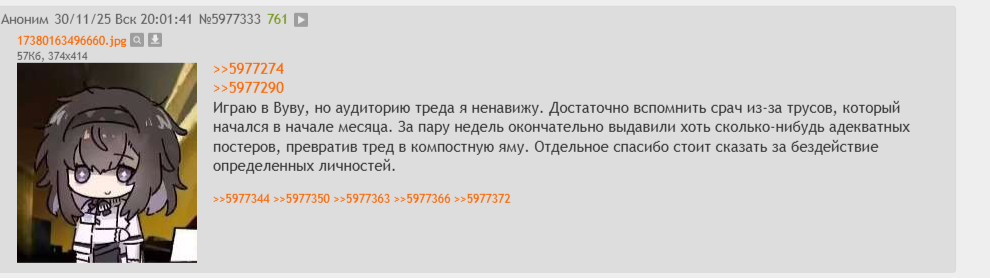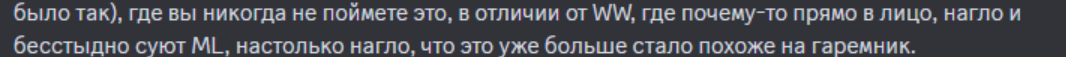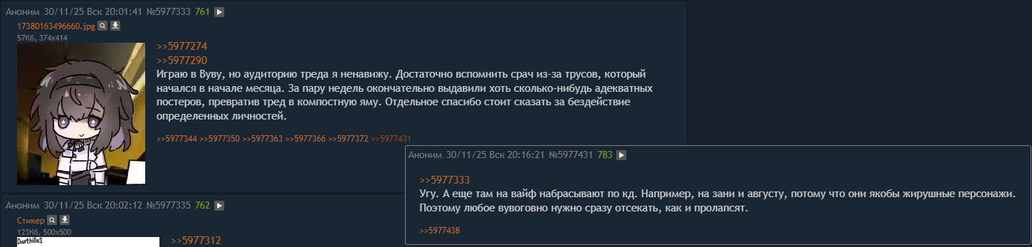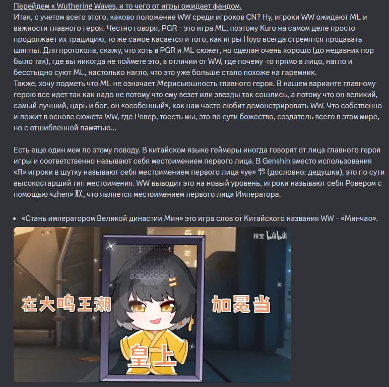 Хочу воспользоваться этим моментом, чтобы поблагодарить зани за то, что в свое время она сохранила мой интерес к вуве на волне пика калощитской агуши и помогла продолжить играть в этот проект. Хотя, если так подумать, я скорее должен быть зол, потому что продолжаю являться рабом Писевора, но что поделать, зани слишком красивая, чтобы на нее злиться