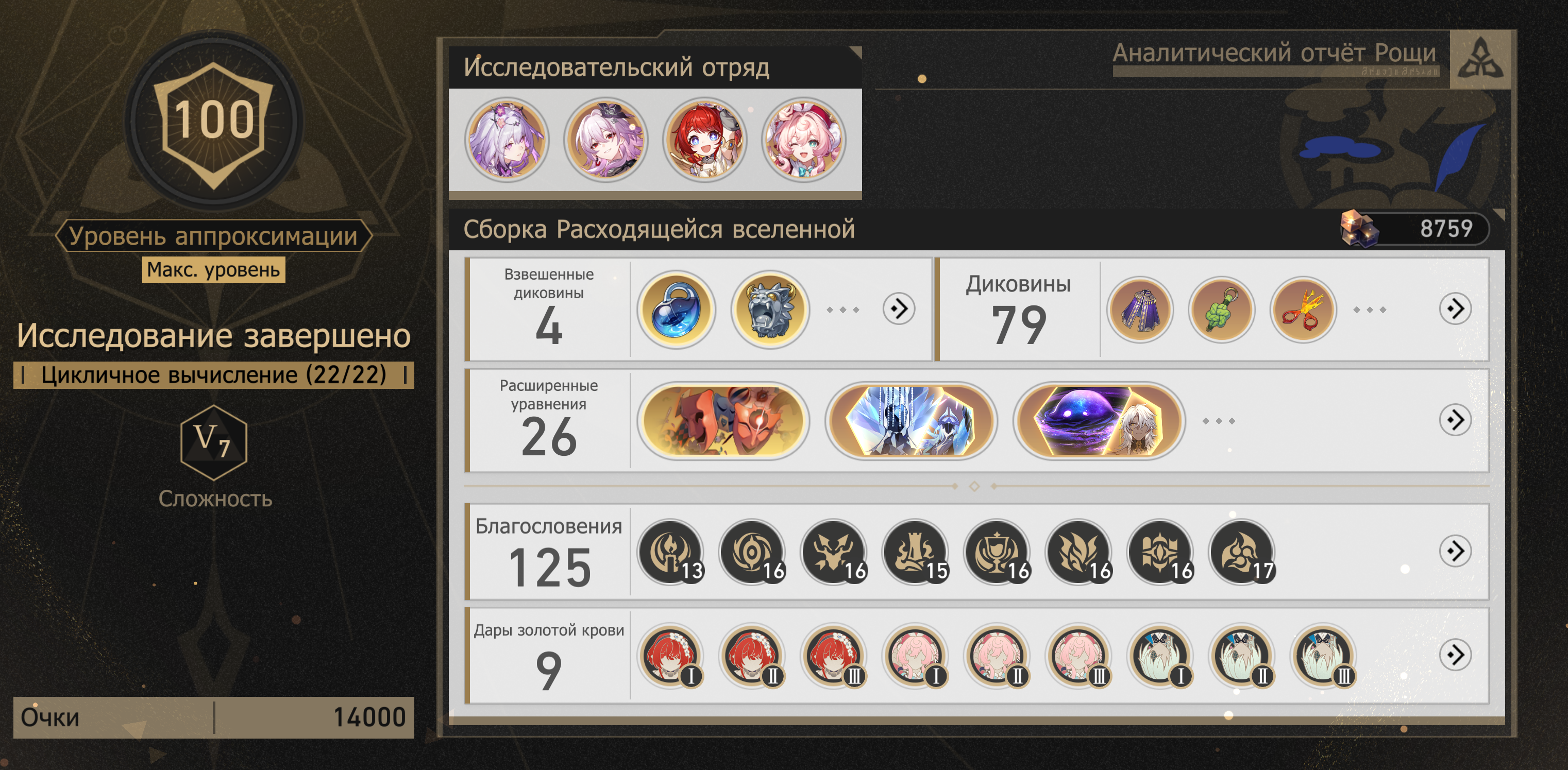 >>5981504 Сначала минимально собери своих чемпиков, чтобы хотя бы мейнстаты артов совпадали, на саб статы вообще забей, прокнуло хорошо - не прокнуло ну и хуй с ним. Потом уже со временем поймёшь куда двигаться и каких чаров роллить, но могу сказать сразу, если будешь крутить мету, то смотри уже на мету 4.* патча, пока будешь собирать более ранних метовых чаров их уже успеют крипнуть 10 раз и даже эйдолоносигны не помогут(ты просто не успеешь накопить).