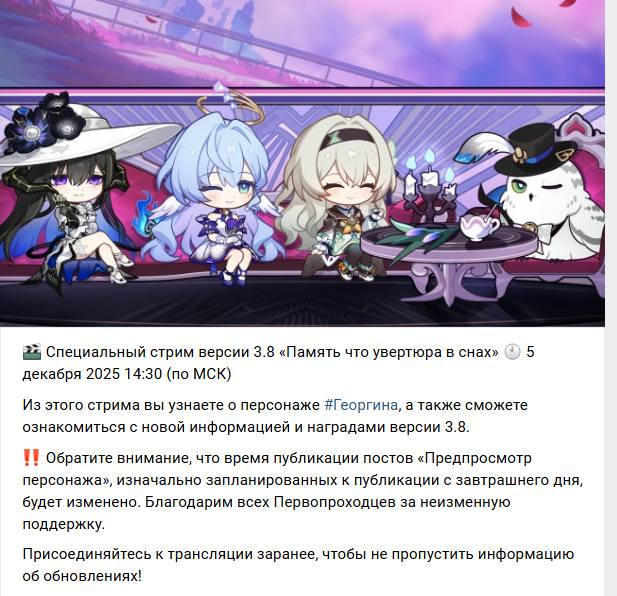 Обратите внимание, что время публикации постов «Предпросмотр персонажа», изначально запланированных к публикации с завтрашнего дня, будет изменено. Благодарим всех Первопроходцев за неизменную поддержку. Перенос к нам приходит, перенос к нам приходит, еоса приносит вкус бодрящий.