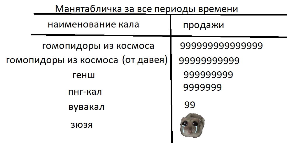 >>5983125 В данной табличке никак, ну ты не забывай, что Кирена, Кася и Фаенон уже отпахали, а некст это филлерные каличи с таким же каличным доходом как рапапа.