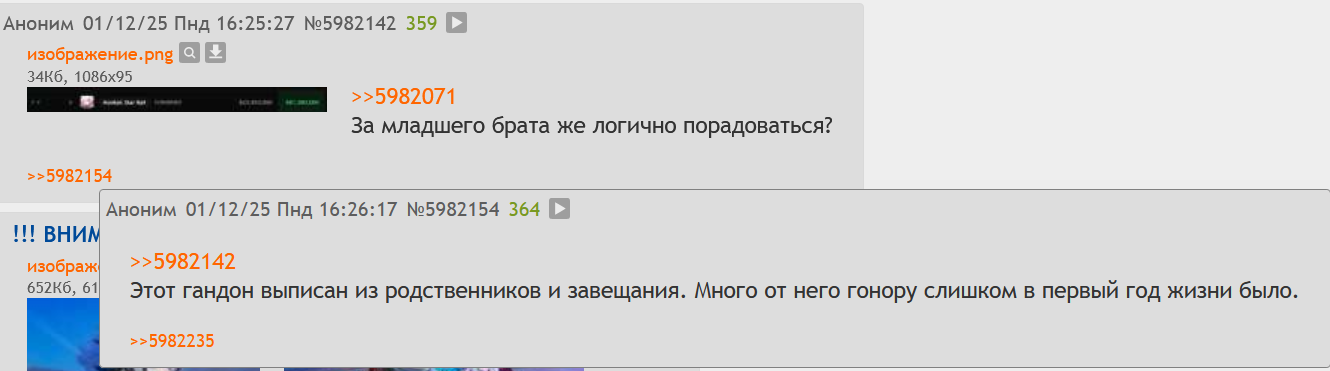 Не сритесь с вувятами - пацаны, от них ноль агрессии в их треде. Срите лучше зюзю с гавнишем лучше, там за спиной наговаривают. Младший братик это Варсапура, остальные нам не братья