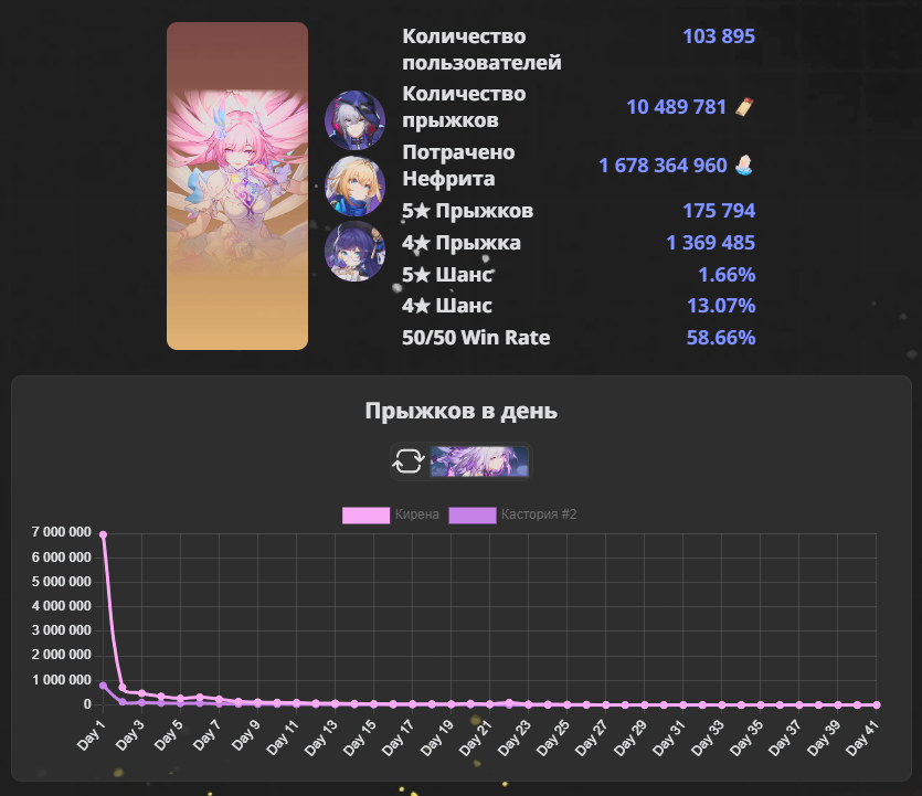 Кирена - 10.5млн круток за 41 день