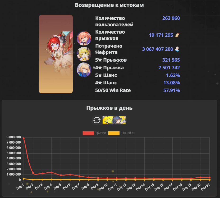 >>5983781 >за 41 день Какой смысл сравнивать крутки текущего баннера с уже давно прошедшими? Эту стату люди будут догружать ещё полтора месяца и твои 10.5млн в итоге вырастут в два раза минимум