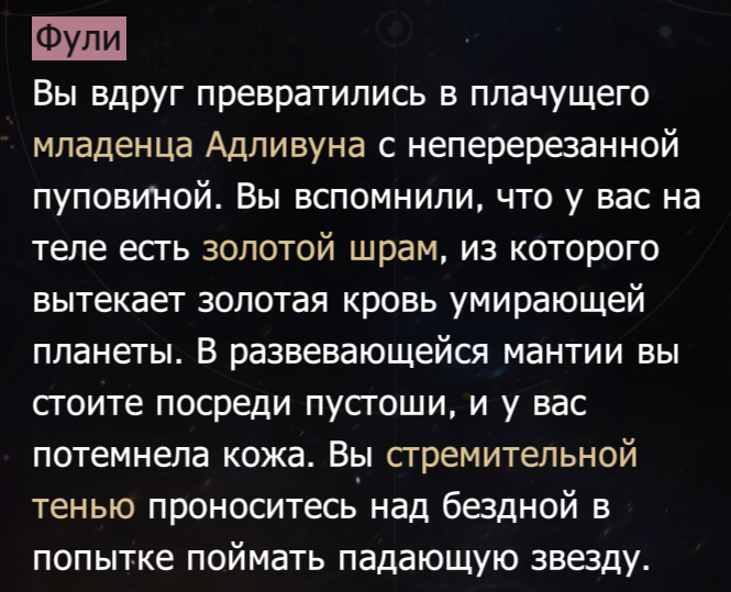 >>5987548 Чел, это отсылка на рождение Нанука. Адливун его родной мир. К слову. Если верить вбросам Темени из 1.3 квеста, Март в этом мире была принцессой, являясь на тот момент держательниицей зеркала, следуя по пути Красоты.