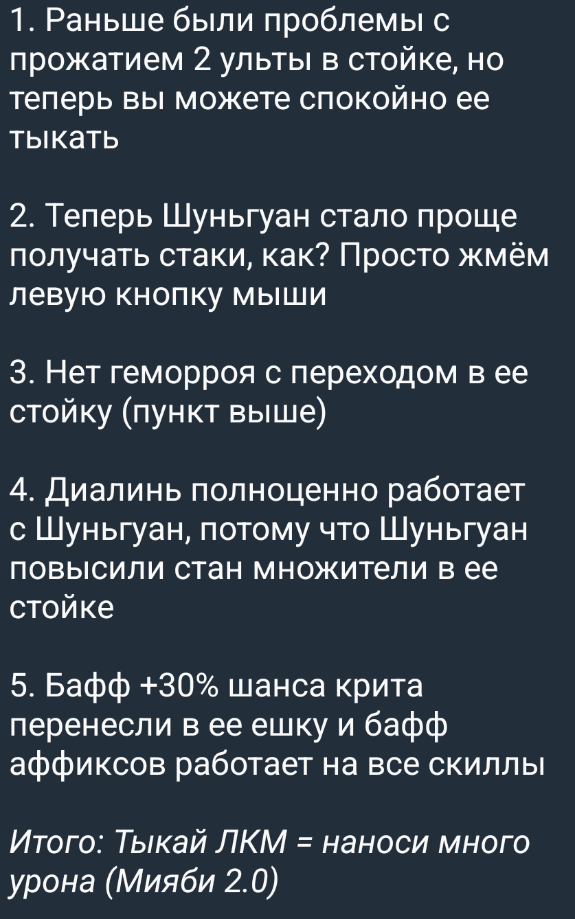 >>5984041 Хуевая стратегия, три вх надо подождать, чтобы ходить в штурм, а к тому моменту уже эндгейм на пять команд будет. Шуню через пол года будут также давить, как щас давят Мияба, скручивая ее урон до уровня честного дамагера без лычки вх.
